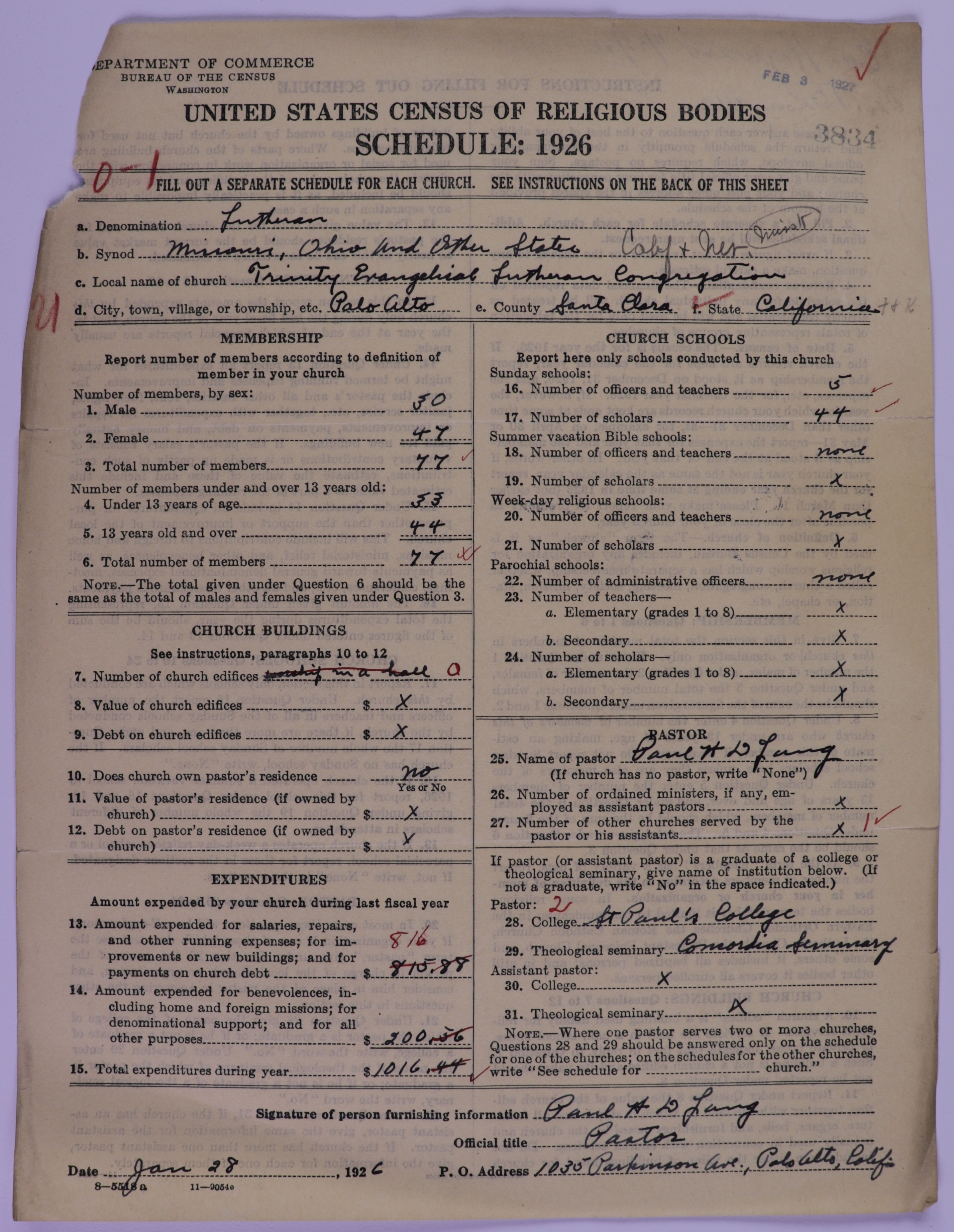 Evangelical Lutheran Synodical Conference of America: Evangelical Lutheran Synod of Missouri, Ohio, and Other States: 3834