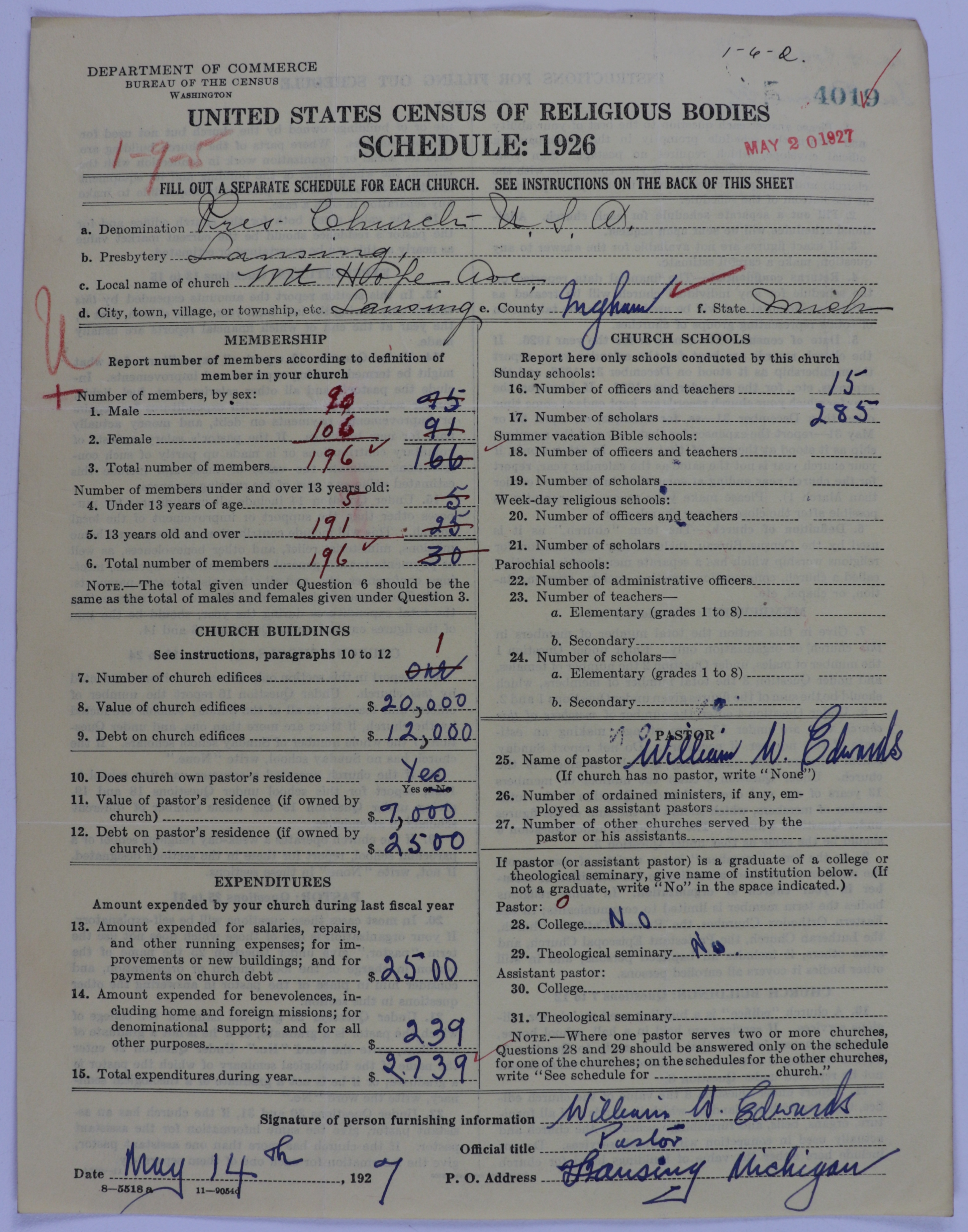 - Presbyterian Church in the United States of America: 4019
