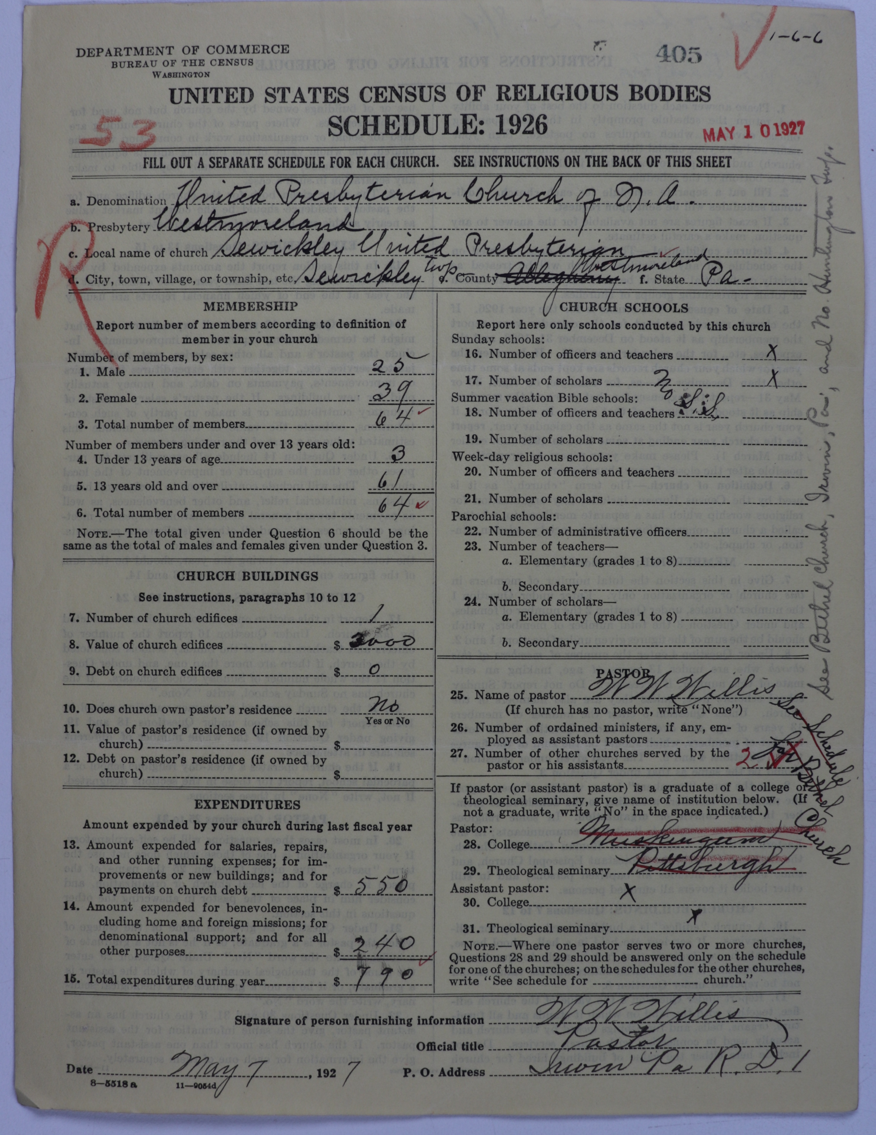 - United Presbyterian Church of North America: 405