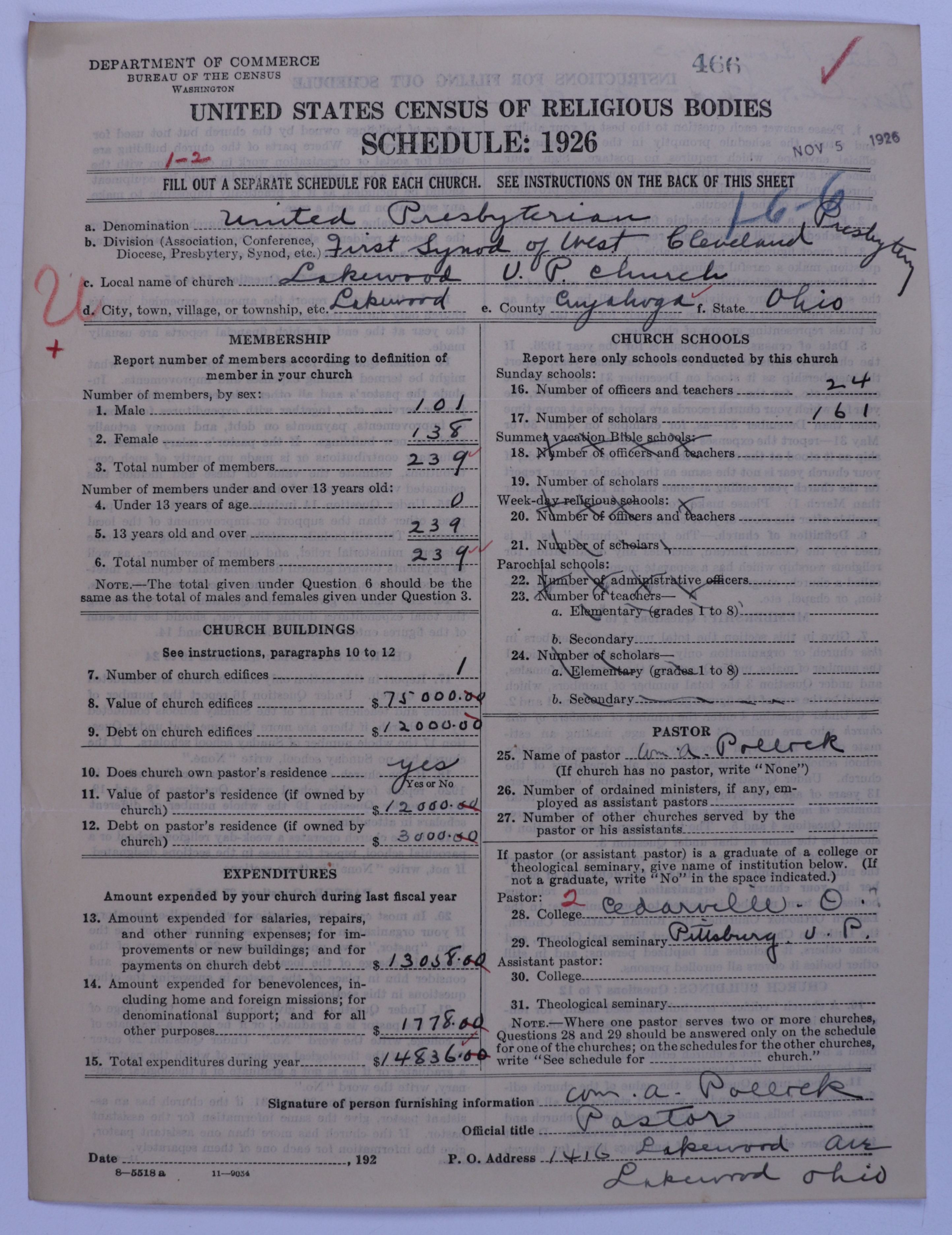 United Presbyterian Church of North America: 466