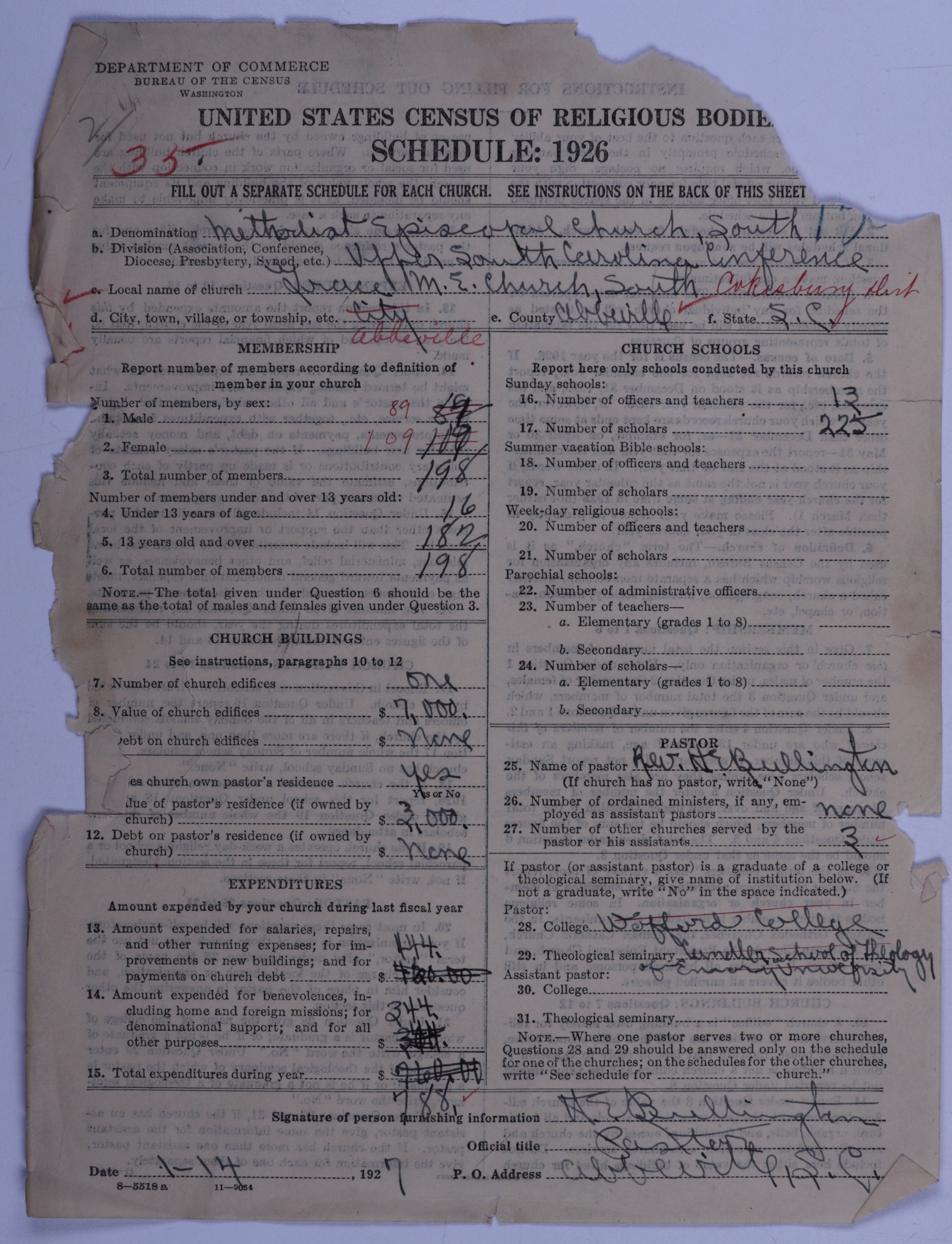 - Methodist Episcopal Church, South: