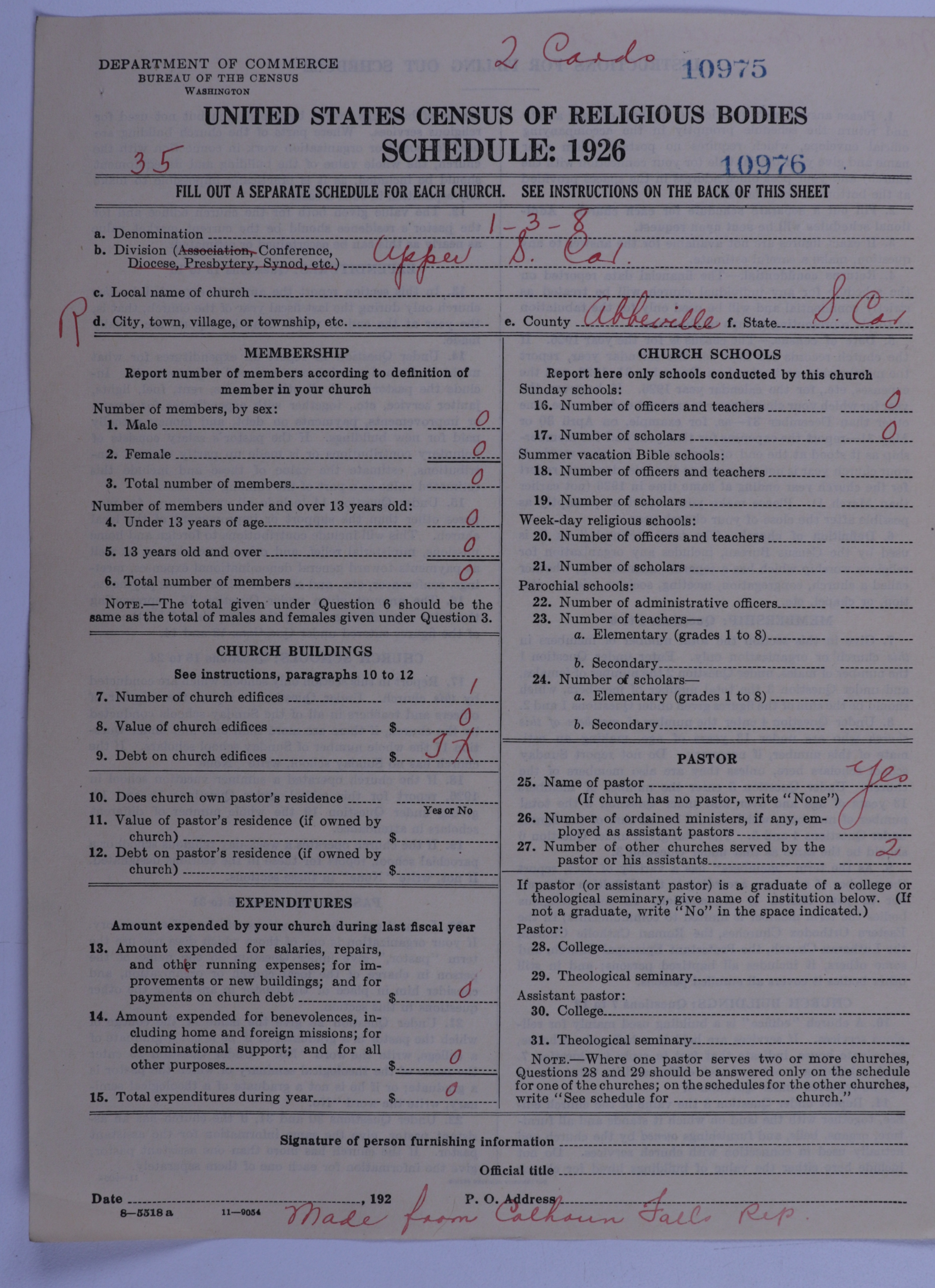 - Methodist Episcopal Church, South: 10976