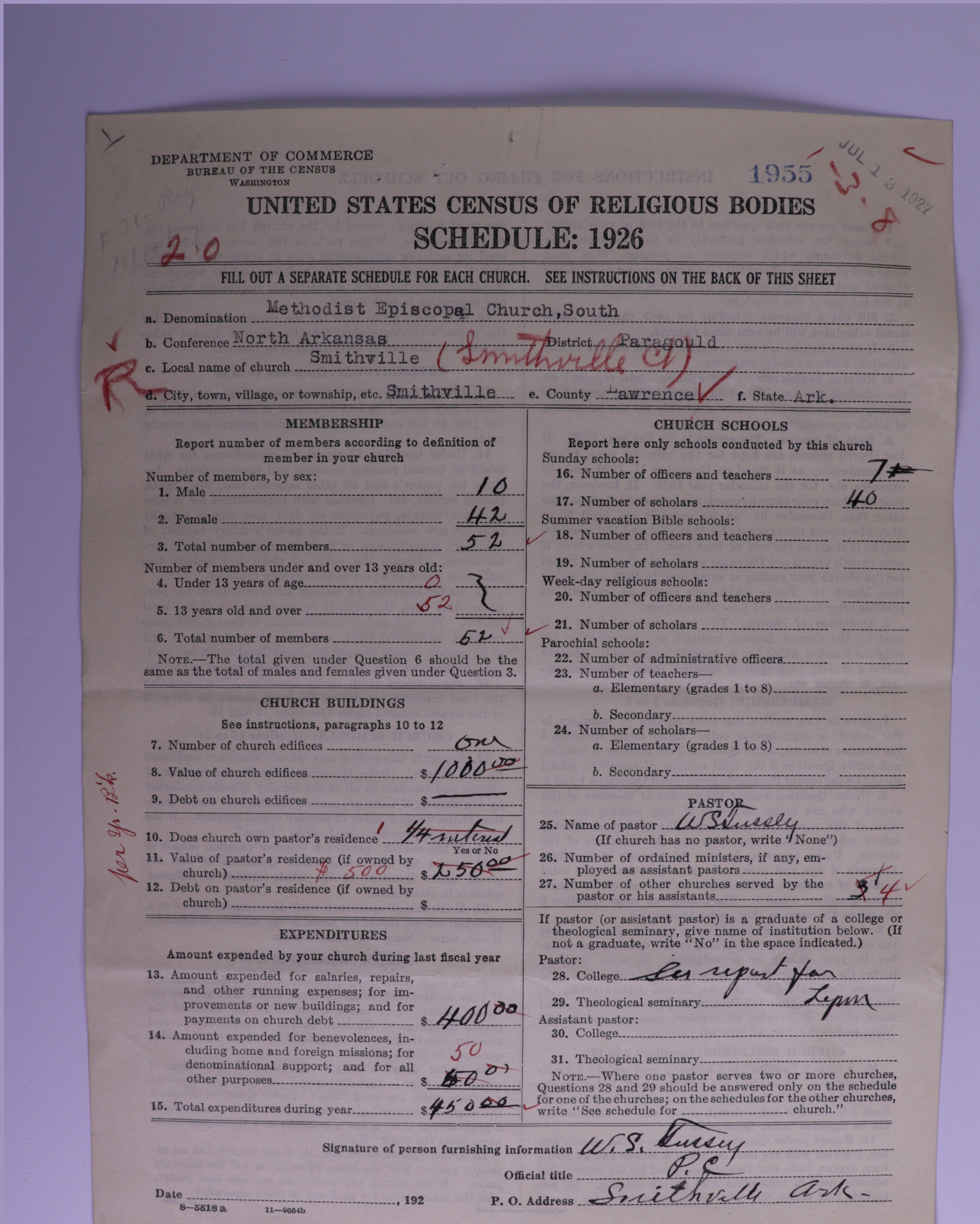 - Methodist Episcopal Church, South: 1955