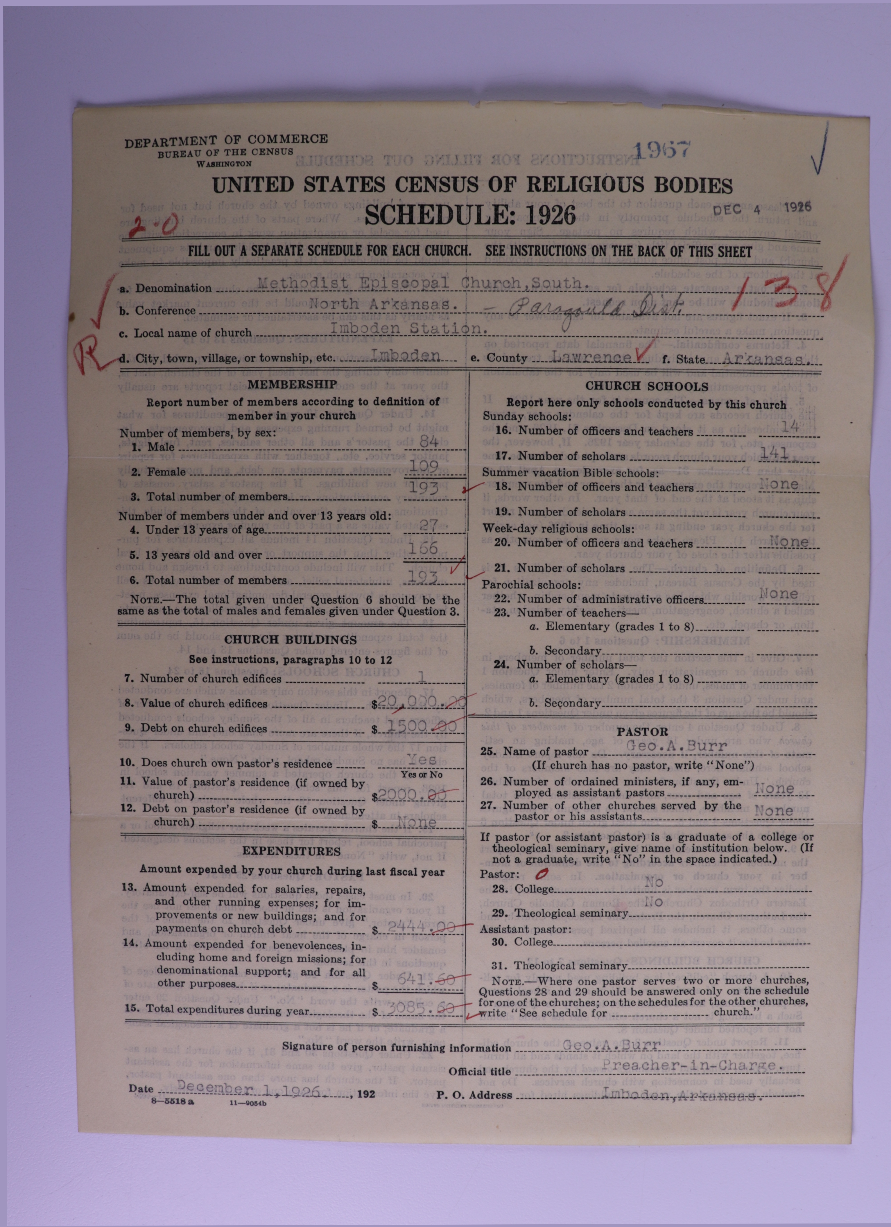 - Methodist Episcopal Church, South: 1967