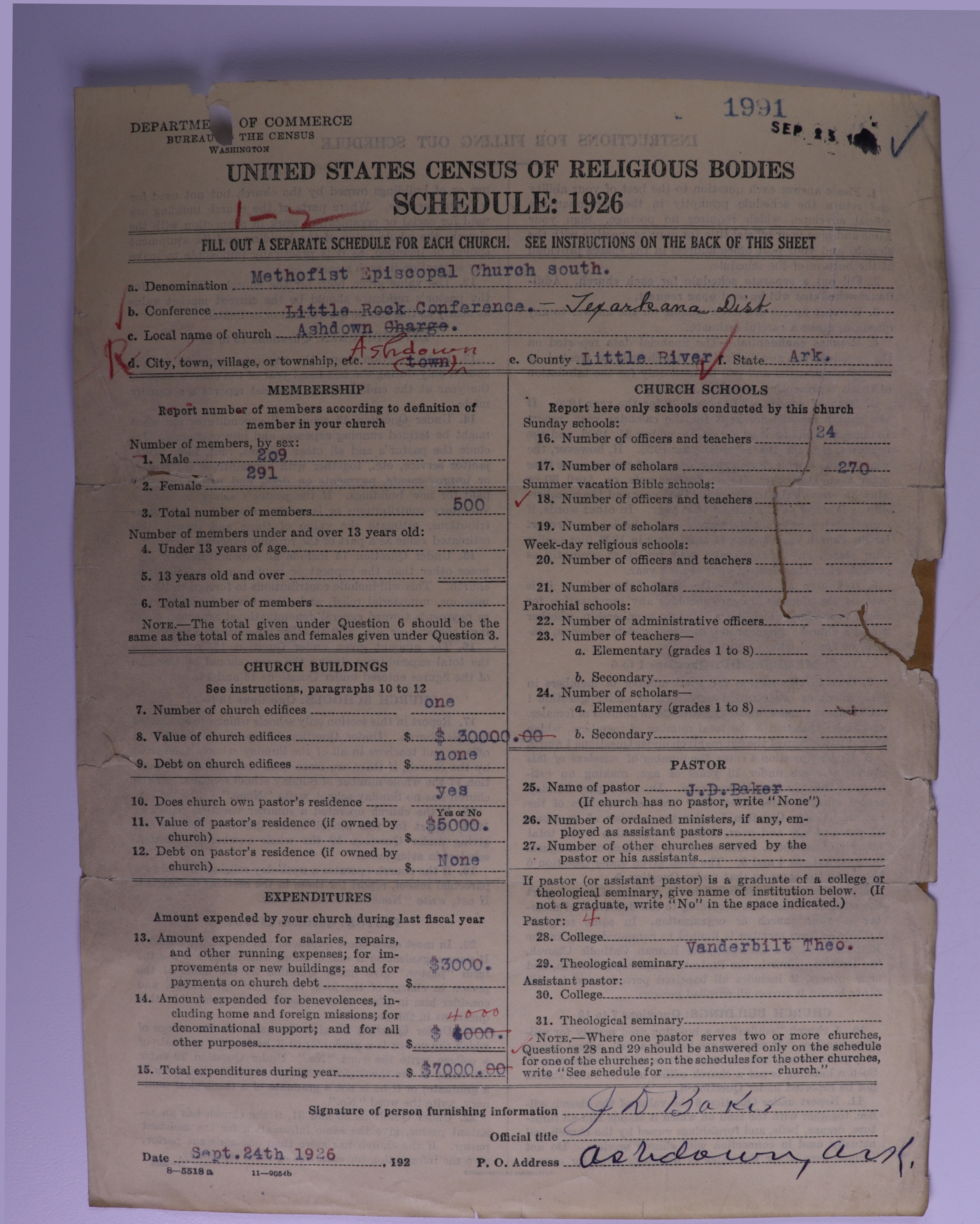 - Methodist Episcopal Church, South: 1991