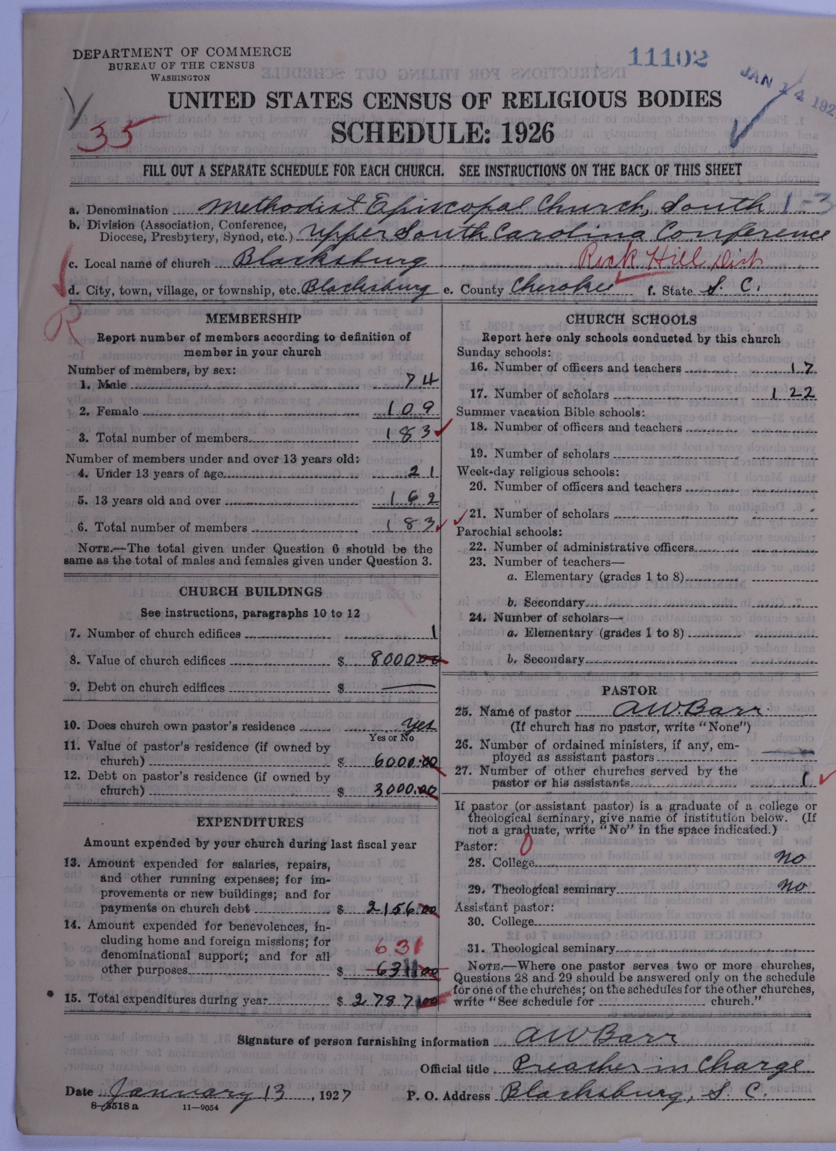 - Methodist Episcopal Church, South: 11102