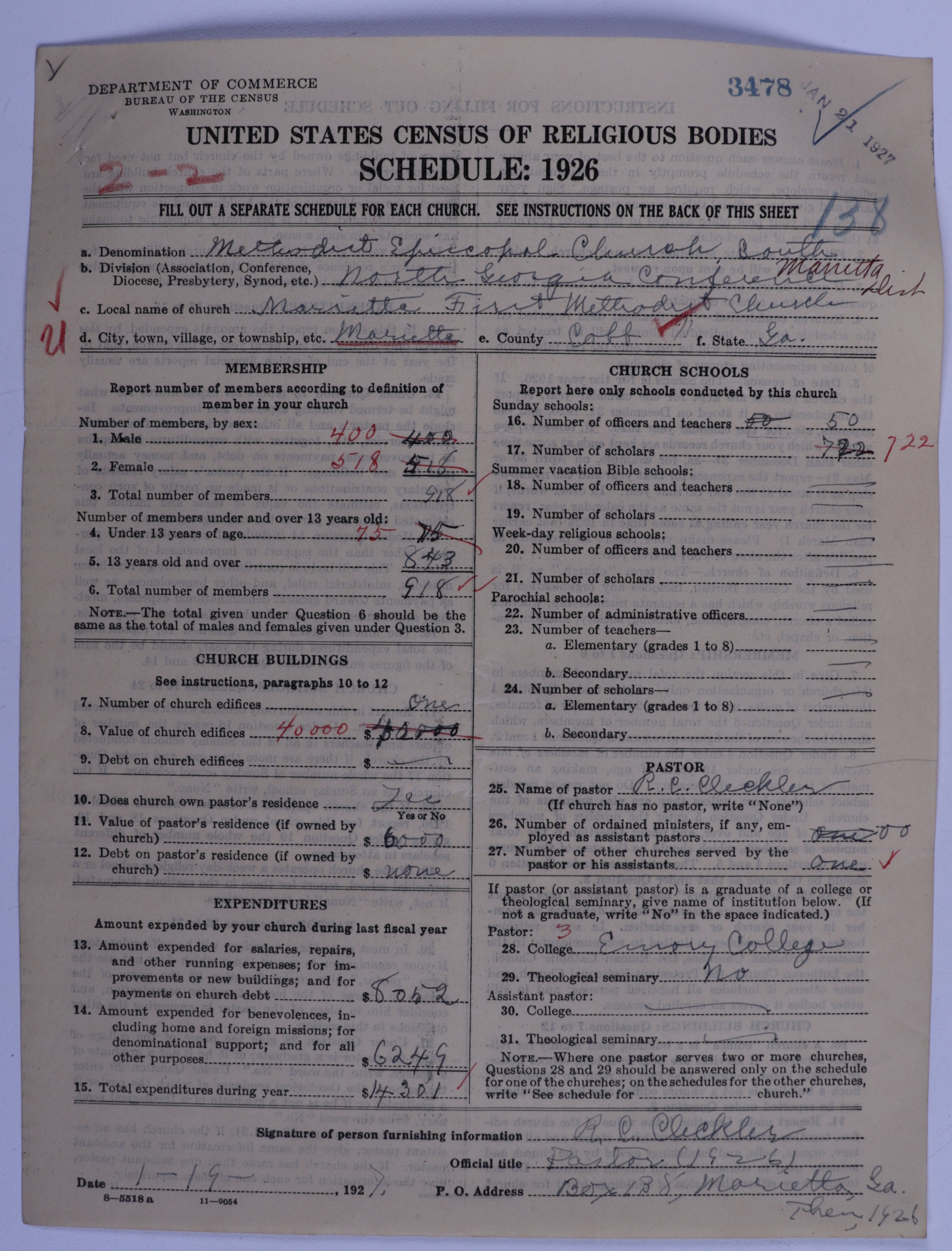 - Methodist Episcopal Church, South: 3478