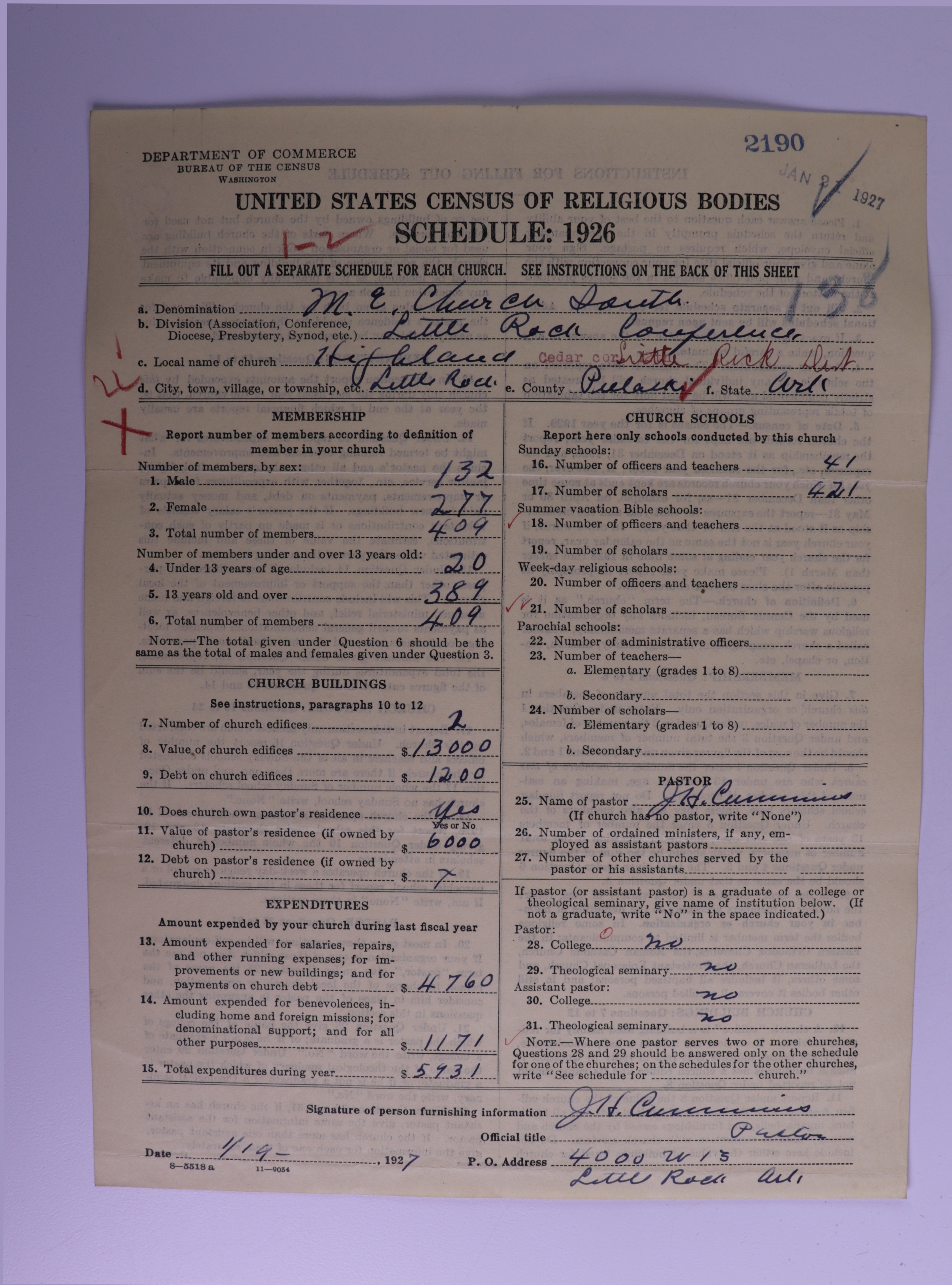 - Methodist Episcopal Church, South: 2190