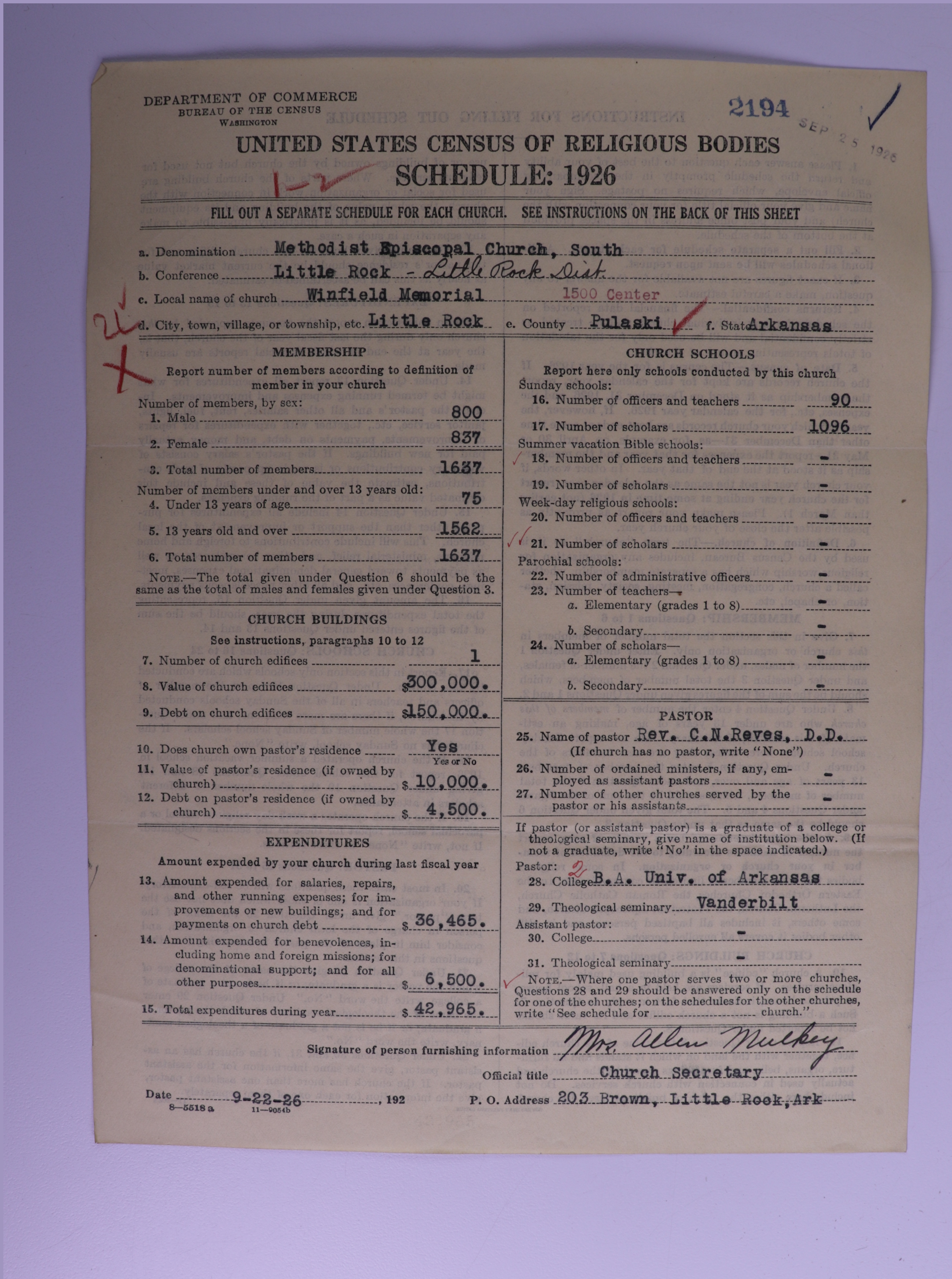 Methodist Episcopal Church, South: 2194