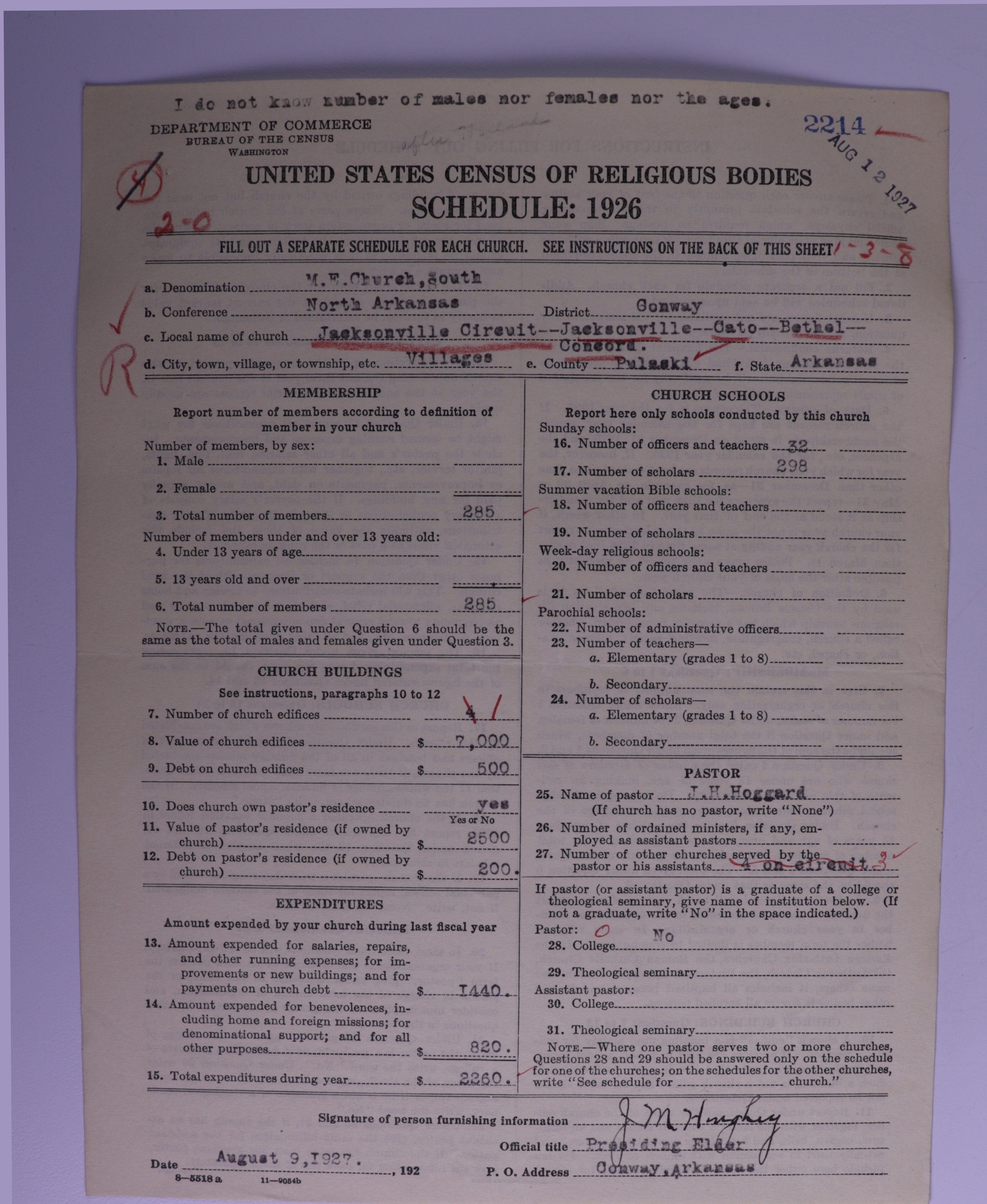 - Methodist Episcopal Church, South: 2214