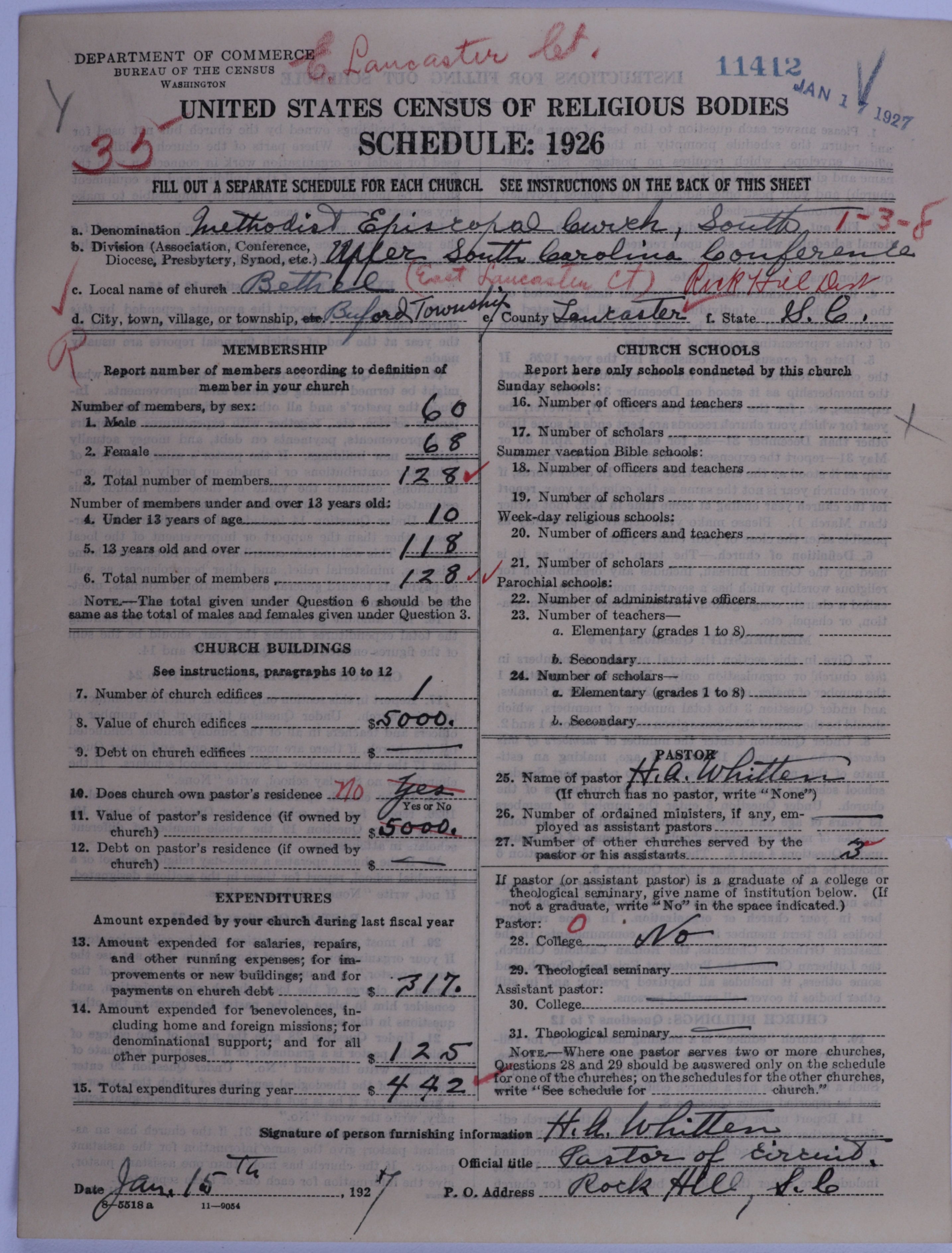- Methodist Episcopal Church, South: 11412