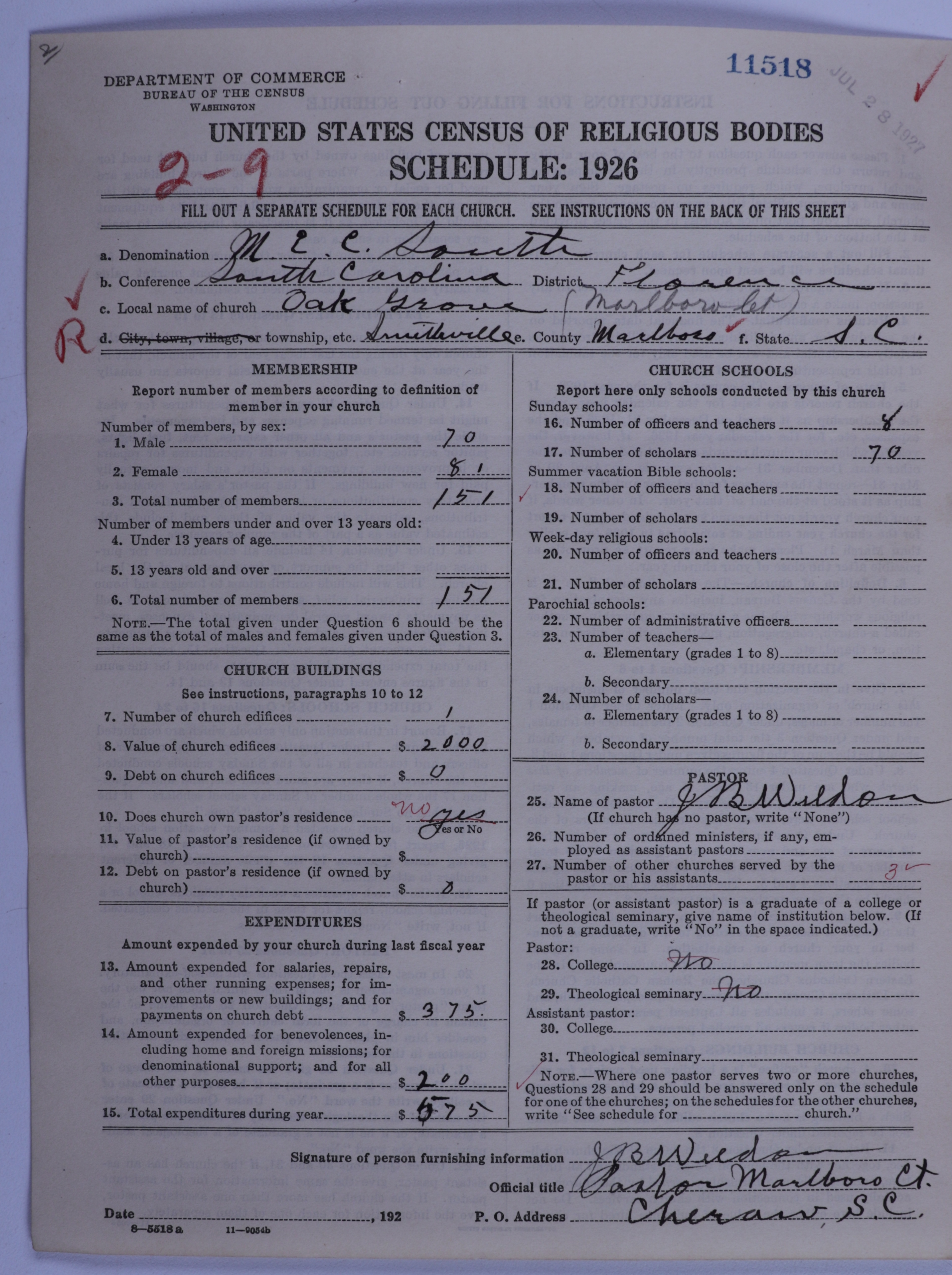 Methodist Episcopal Church, South: 11518