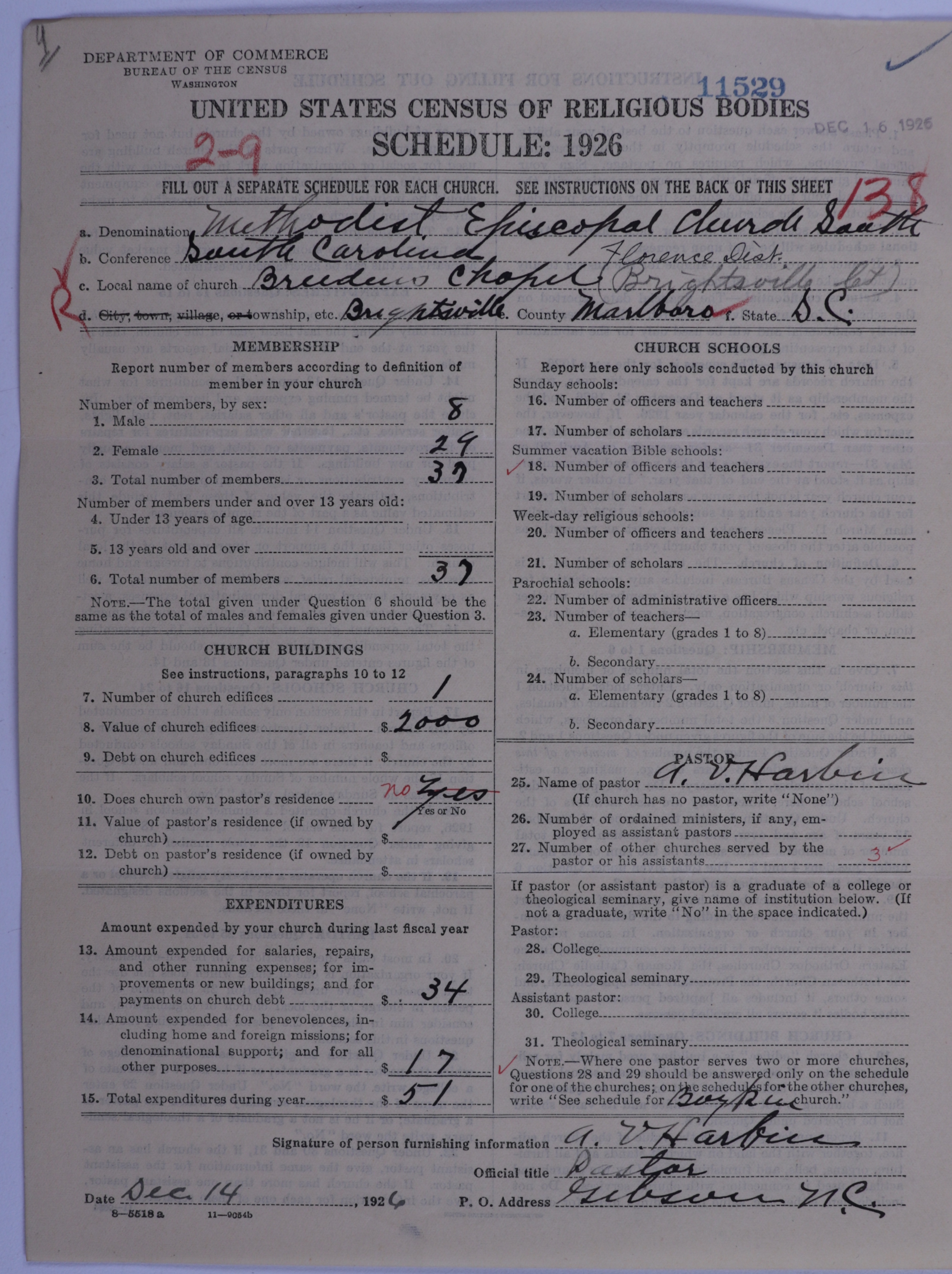 - Methodist Episcopal Church, South: 11529