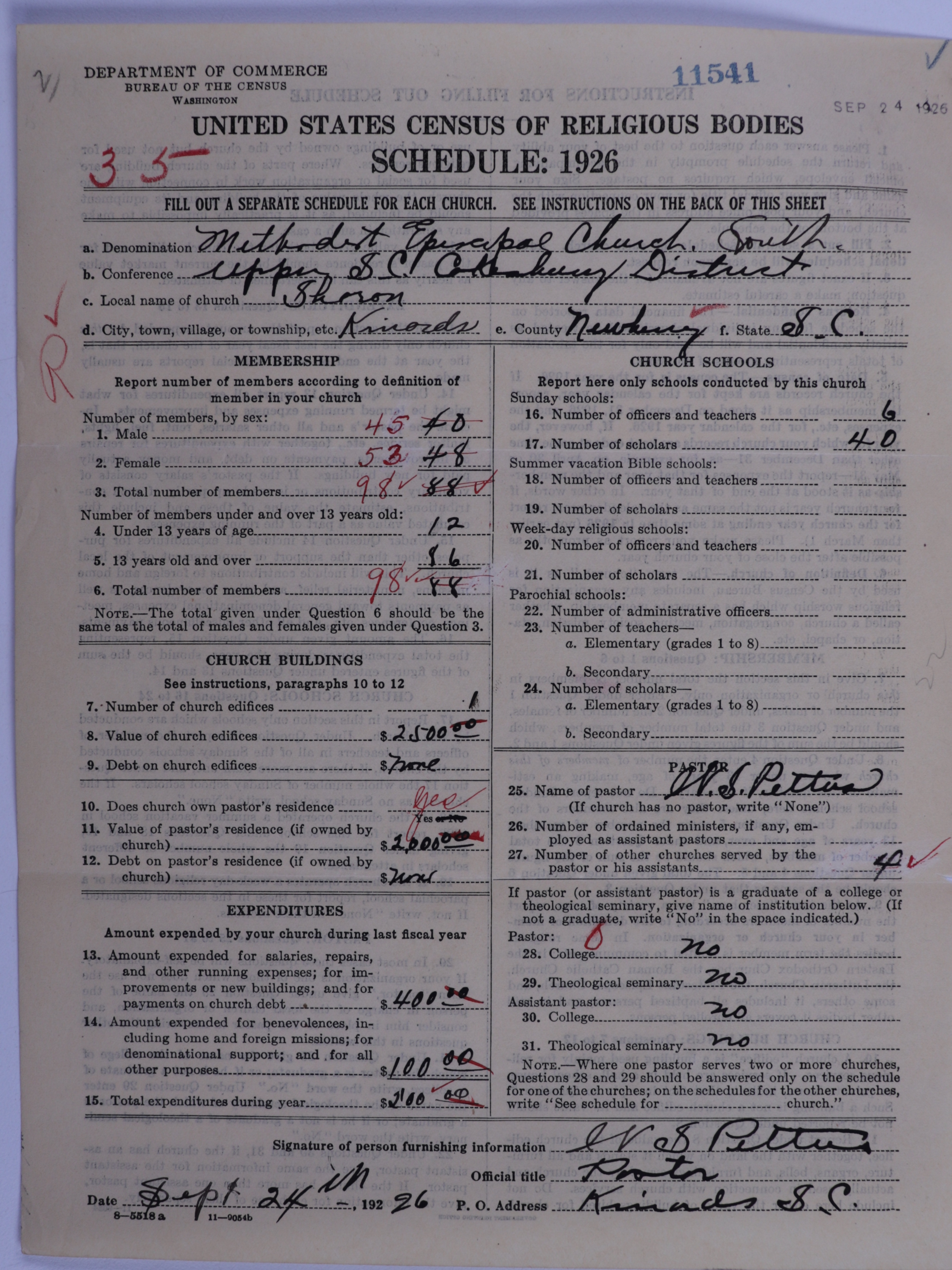 - Methodist Episcopal Church, South: 11541