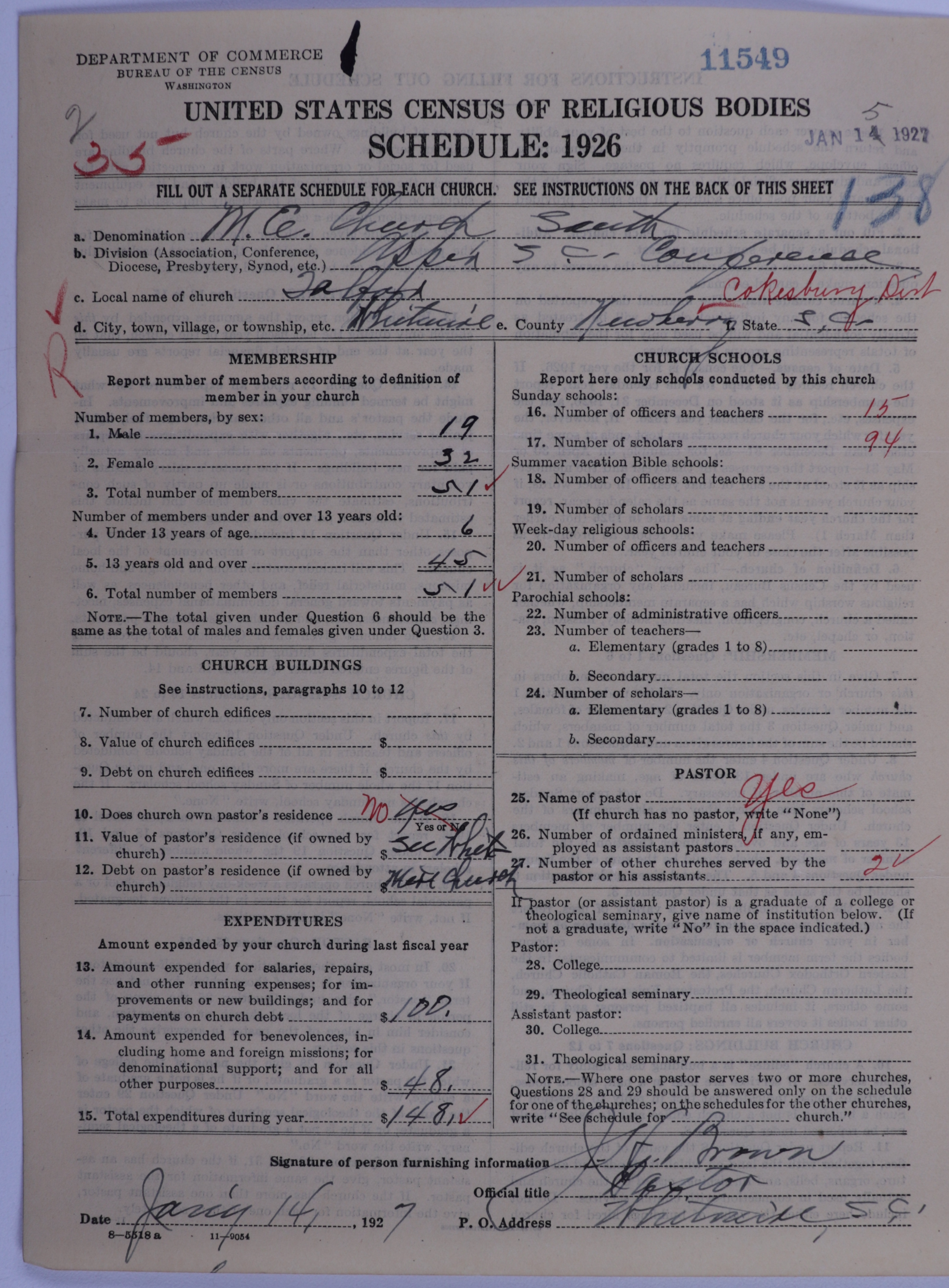 - Methodist Episcopal Church, South: 11549