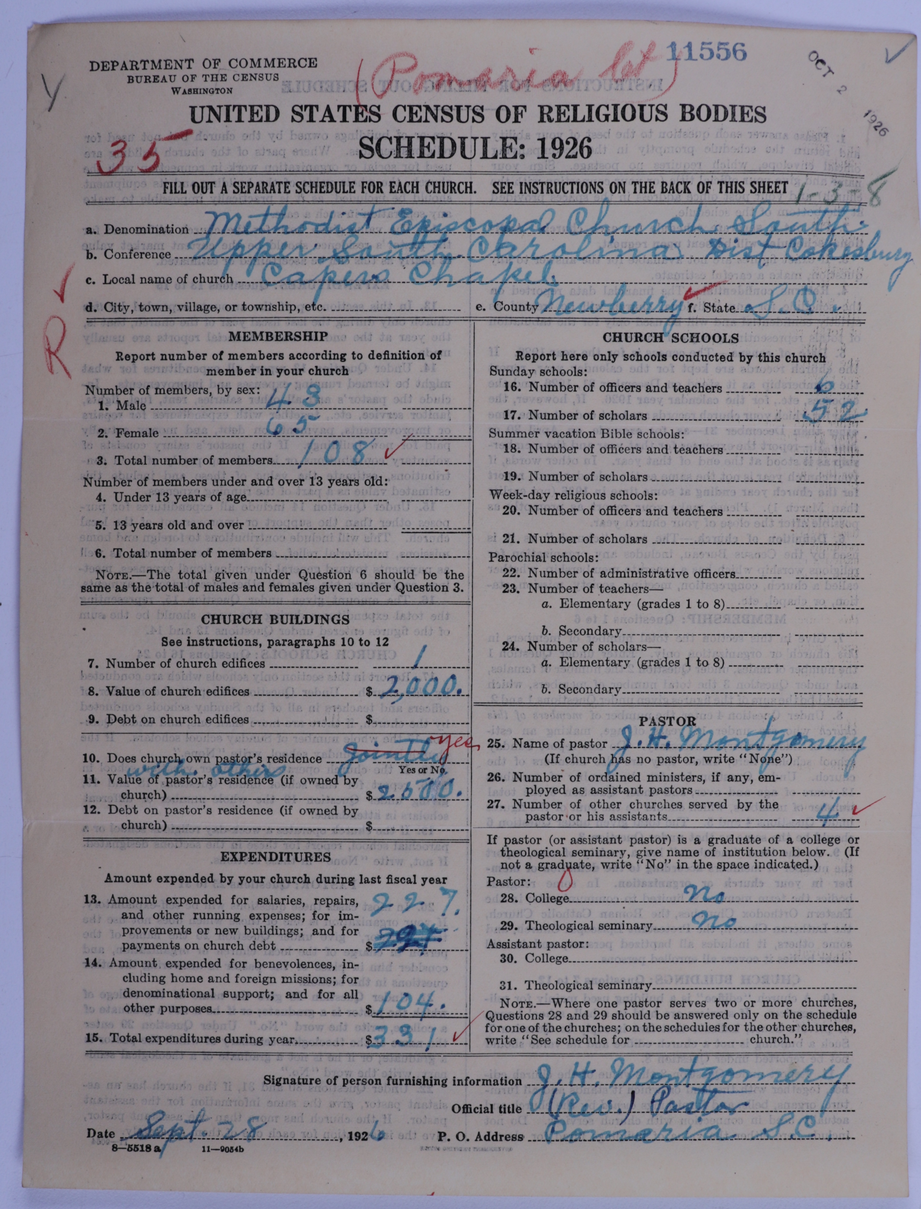 Methodist Episcopal Church, South: 11556