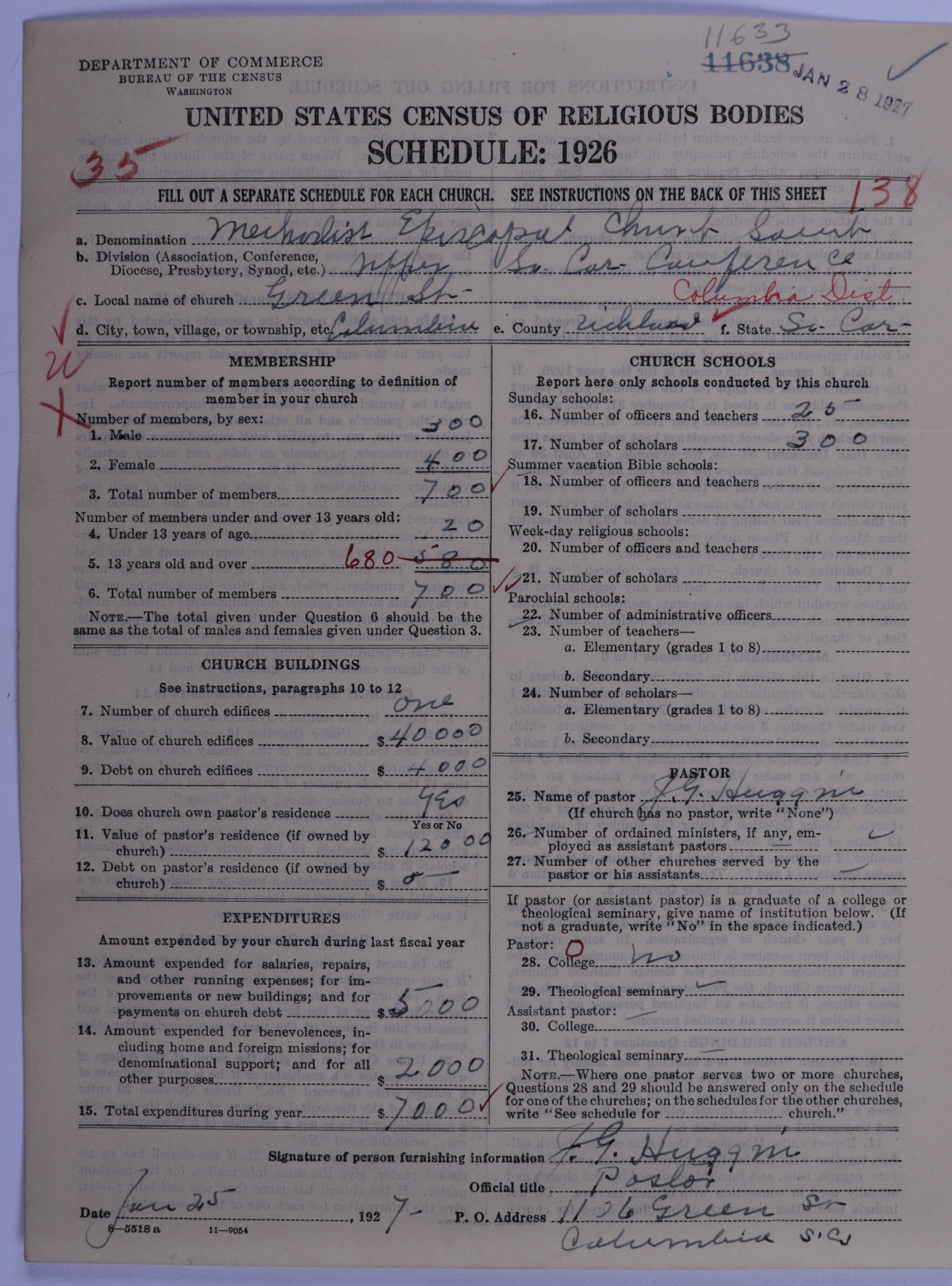 - Methodist Episcopal Church, South: 11633
