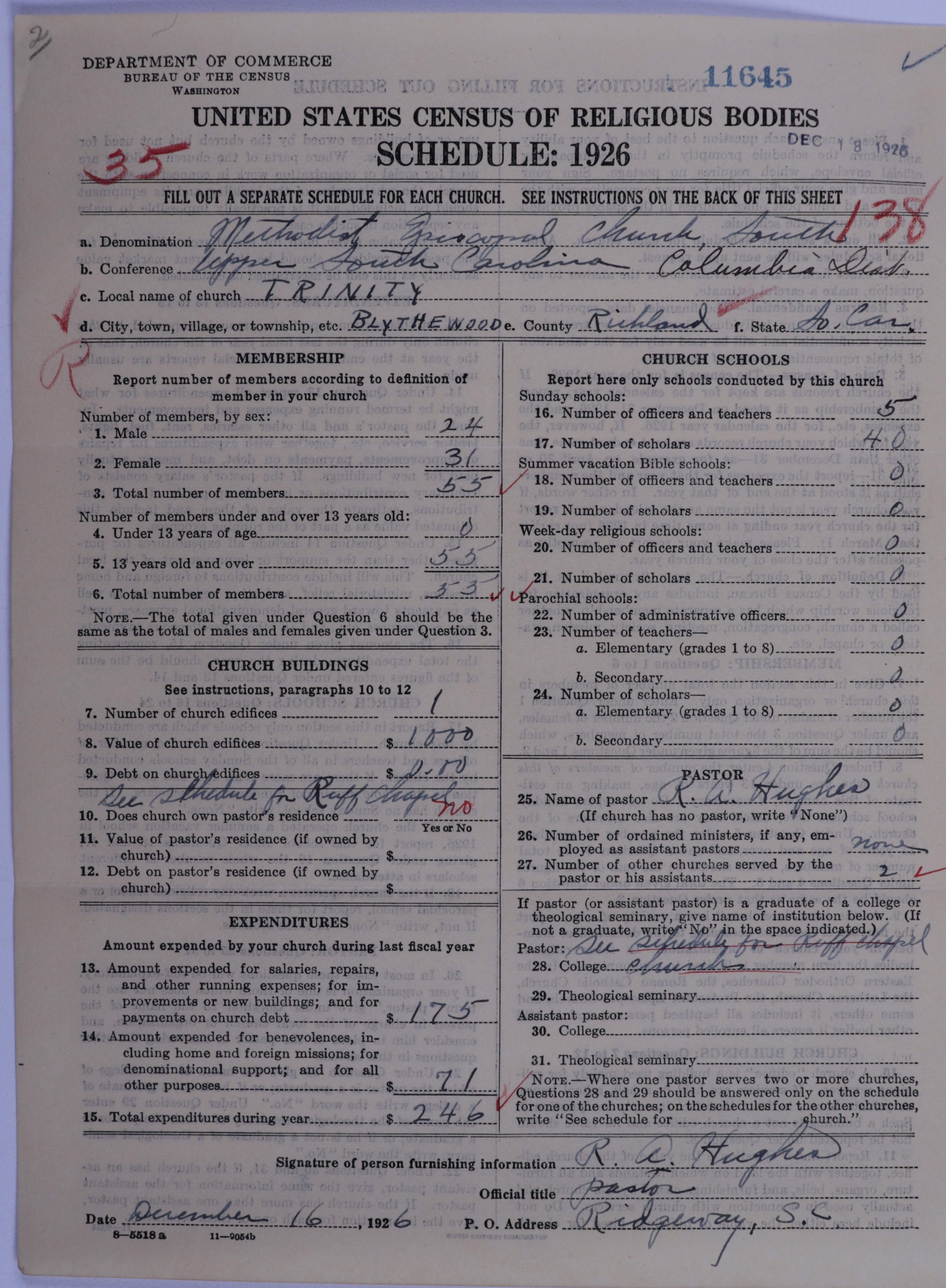 - Methodist Episcopal Church, South: 11645