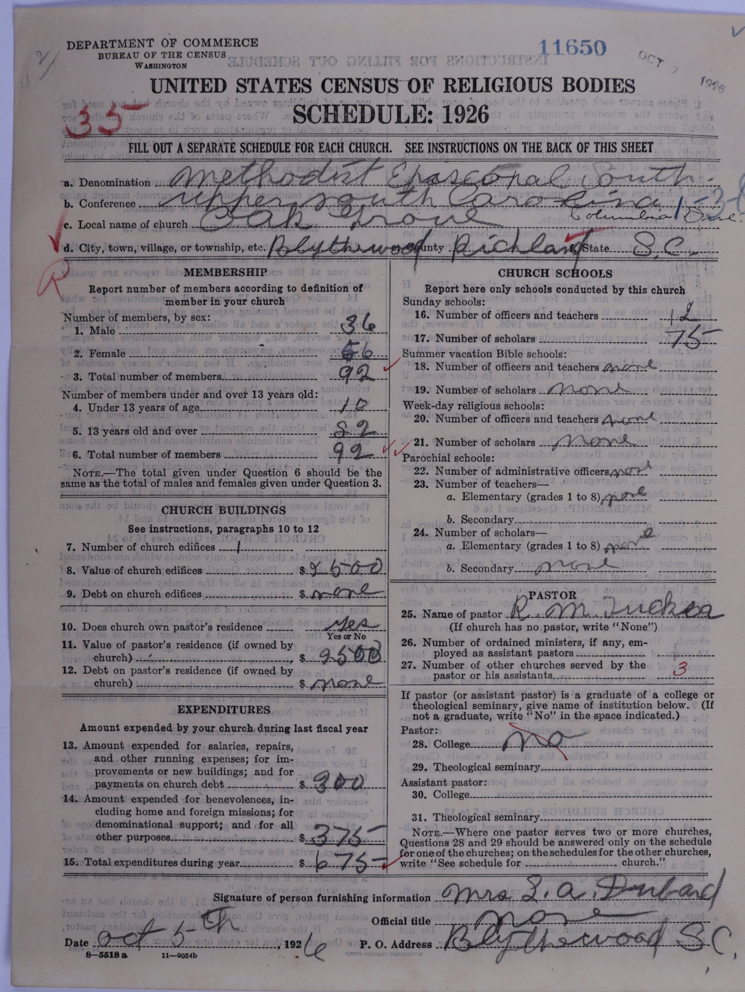 - Methodist Episcopal Church, South: 11650