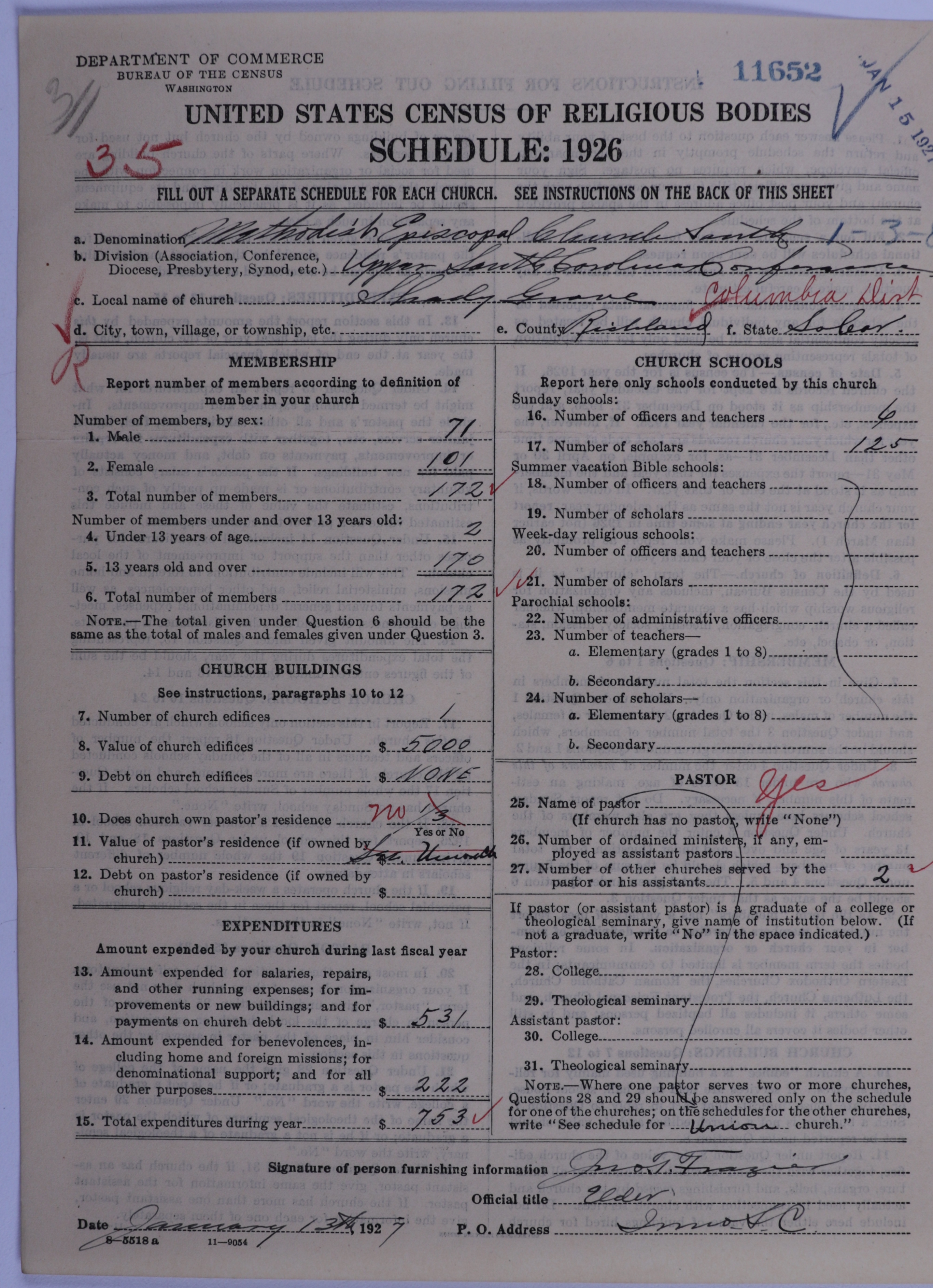 - Methodist Episcopal Church, South: 11652