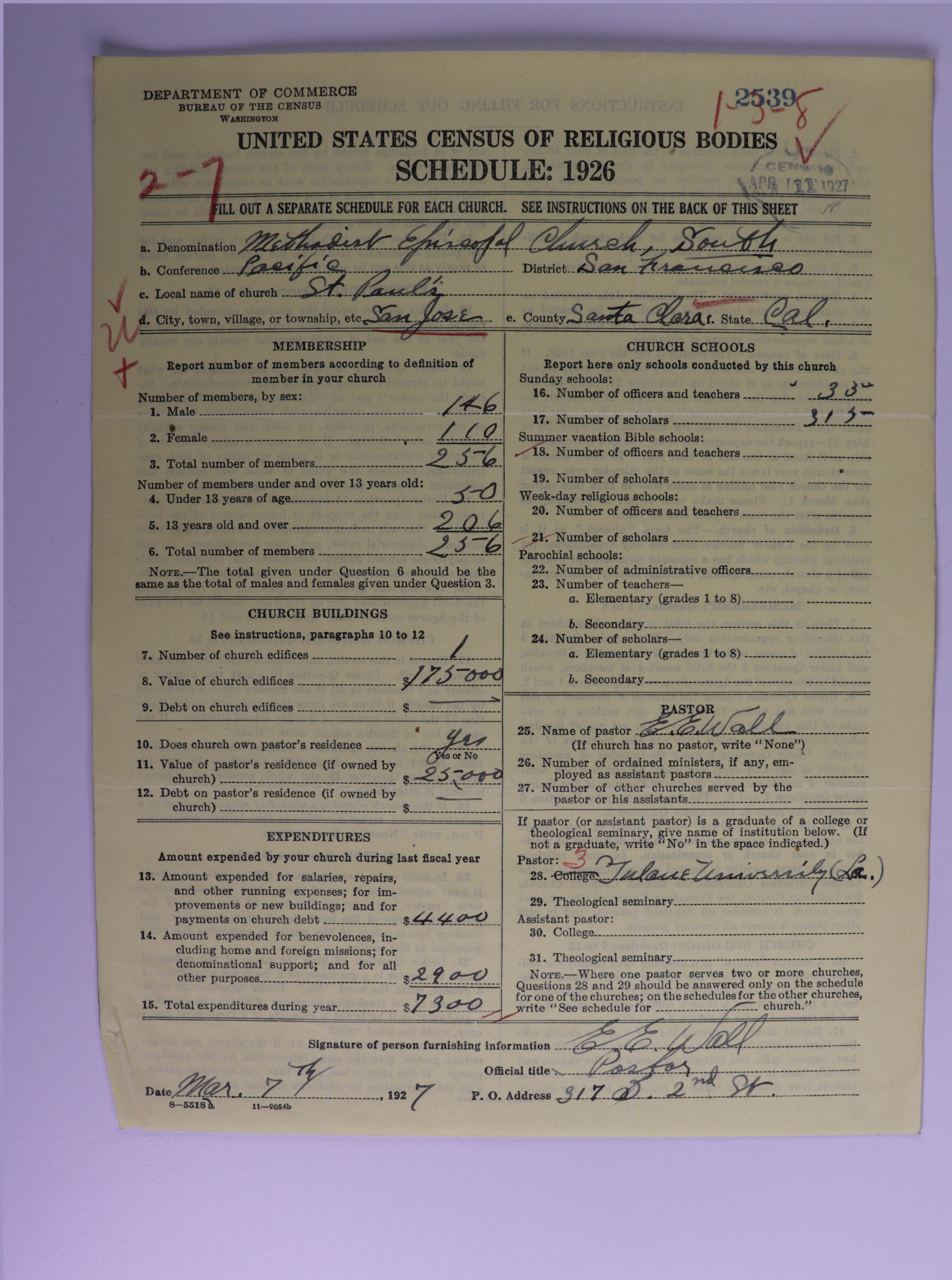 Methodist Episcopal Church, South: 2539