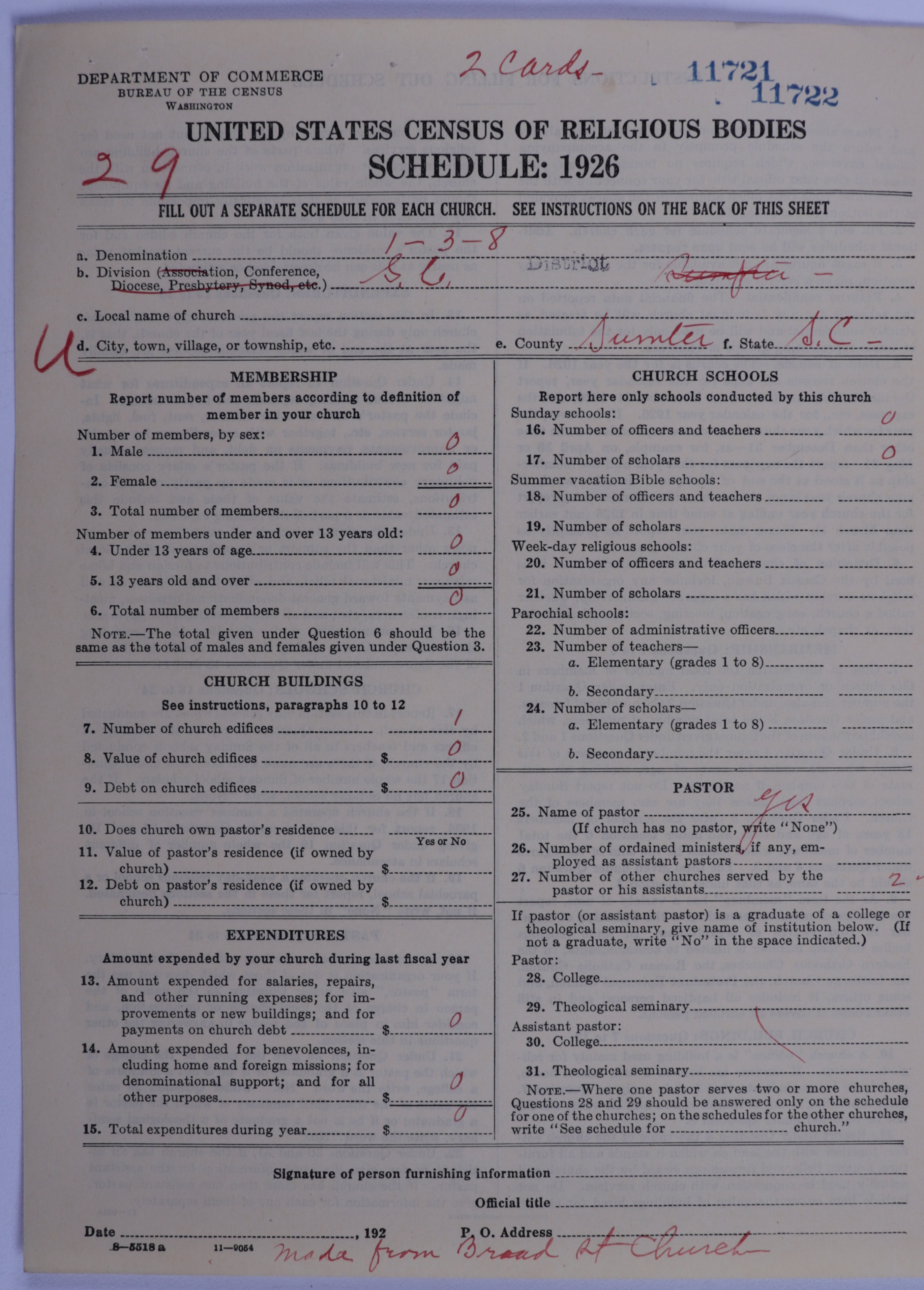 - Methodist Episcopal Church, South: 11722
