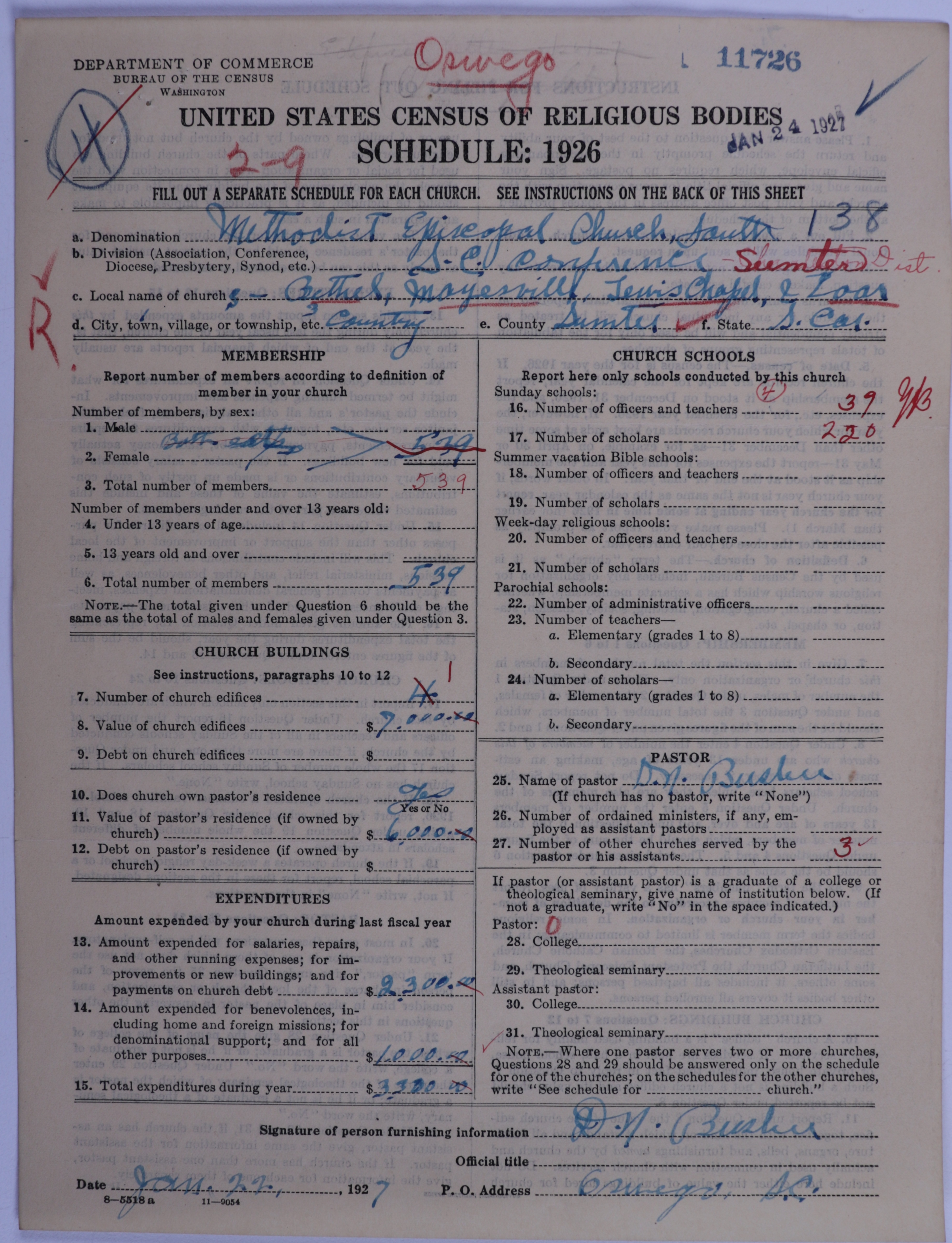 - Methodist Episcopal Church, South: 11726