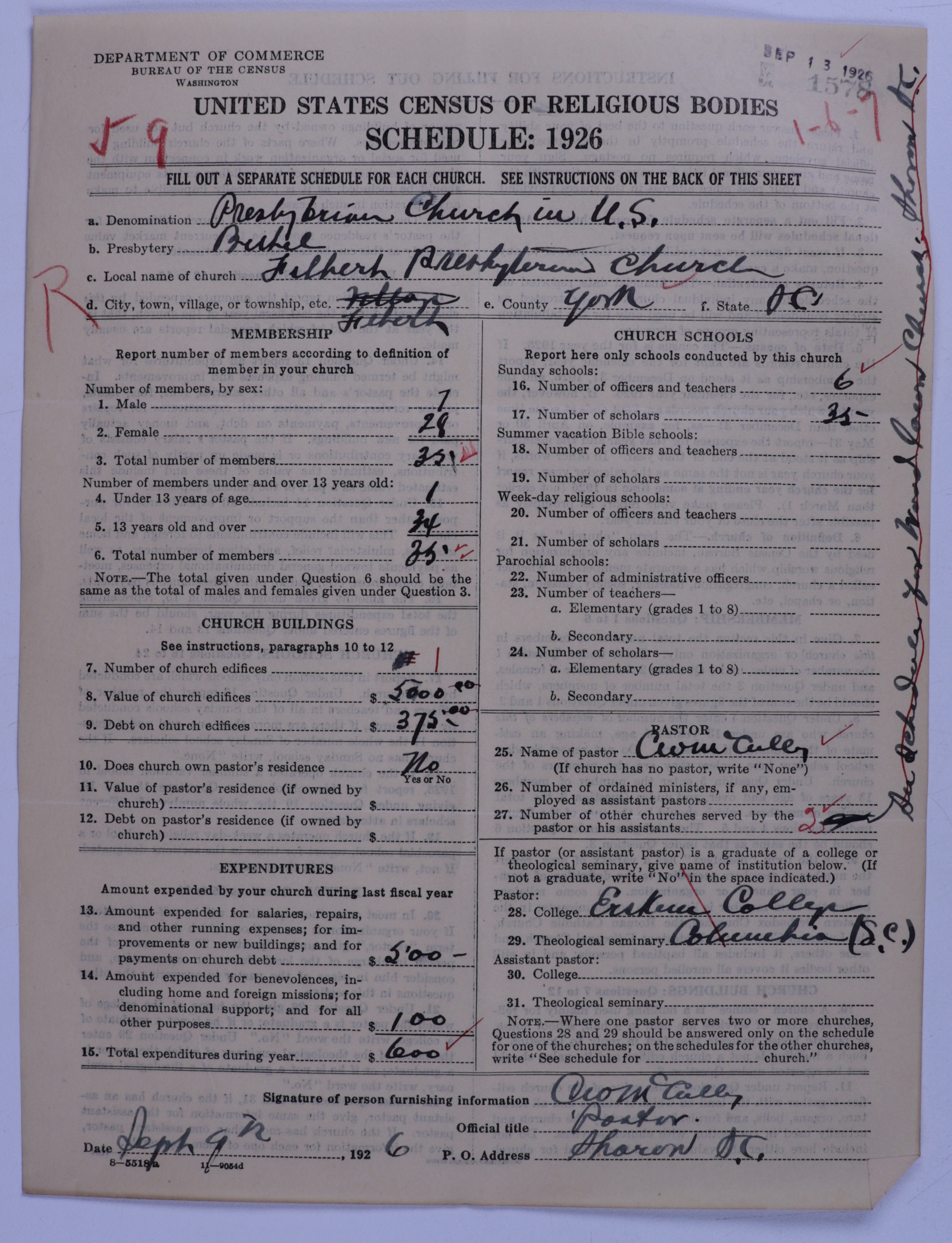 - Presbyterian Church in the United States: 1578