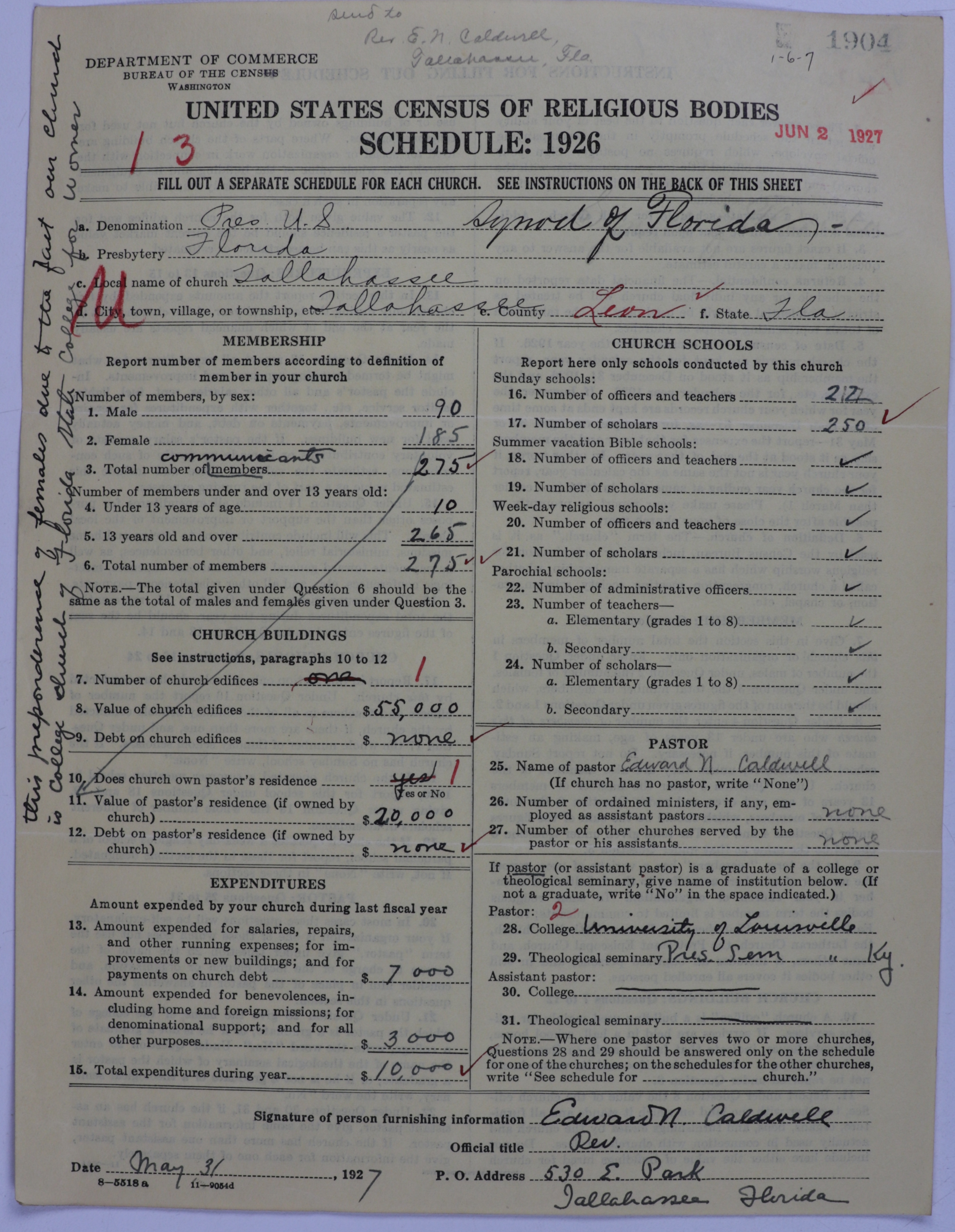 - Presbyterian Church in the United States: 1904