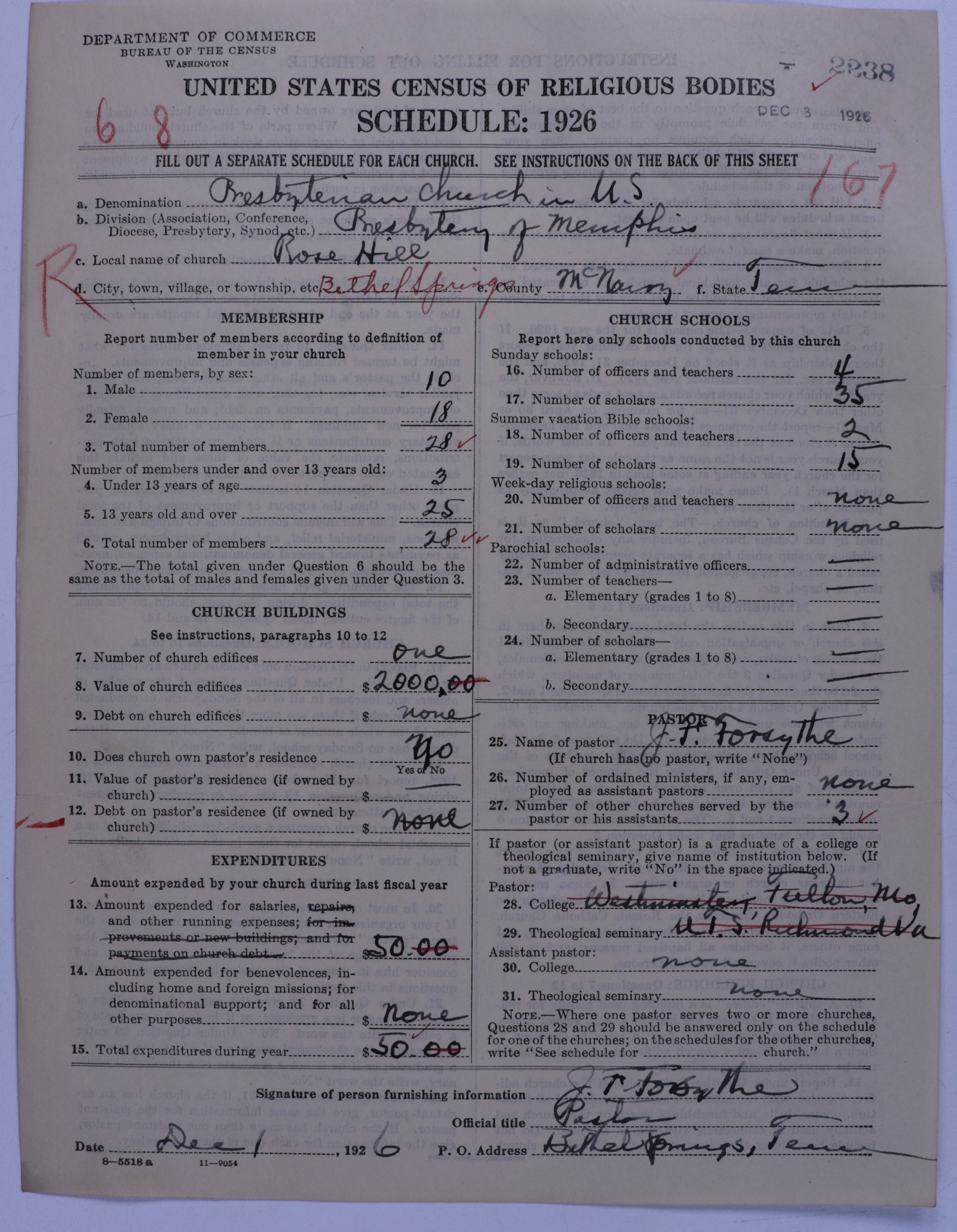 - Presbyterian Church in the United States: 2238