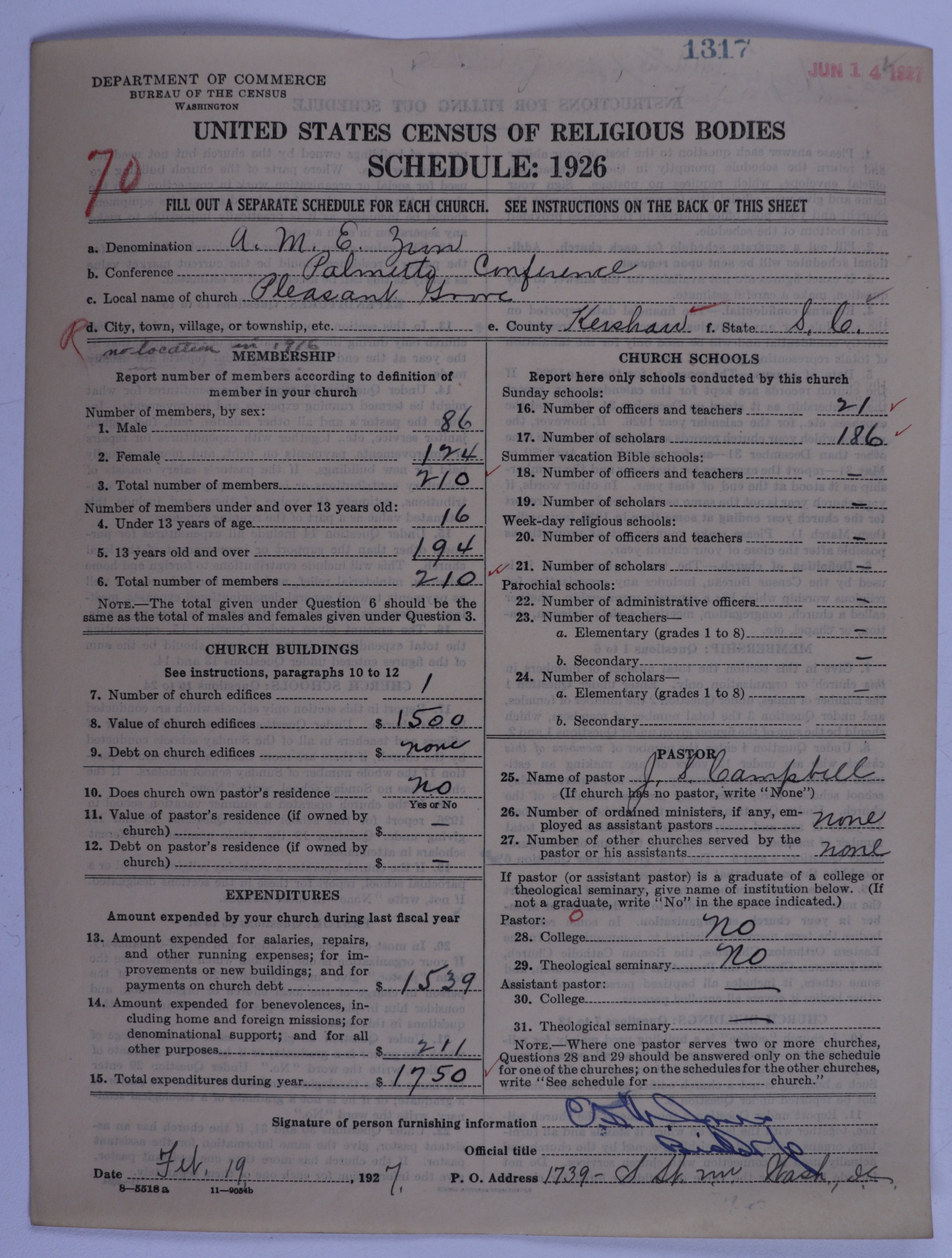 African Methodist Episcopal Zion Church: 1317