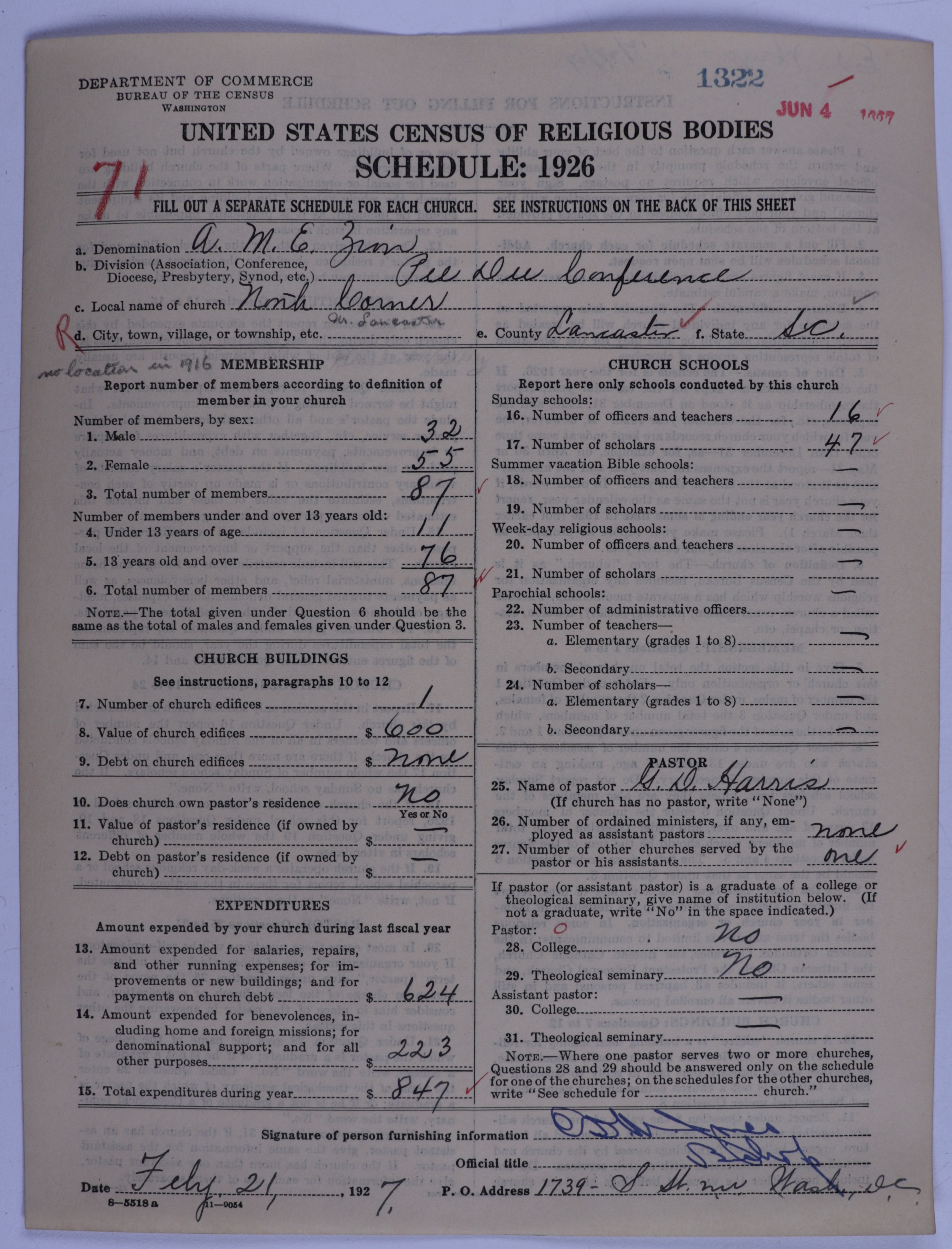African Methodist Episcopal Zion Church: 1322