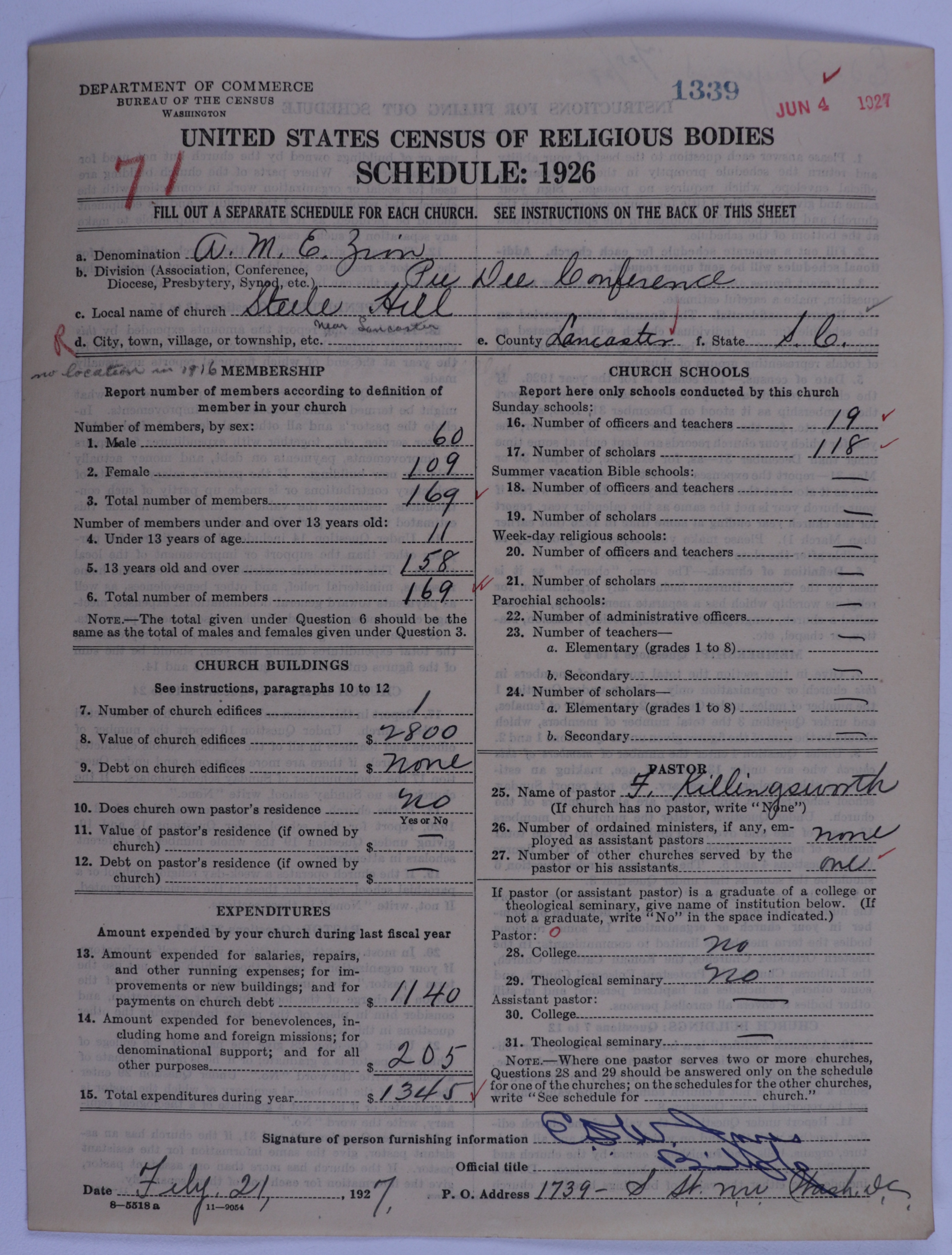 African Methodist Episcopal Zion Church: 1339