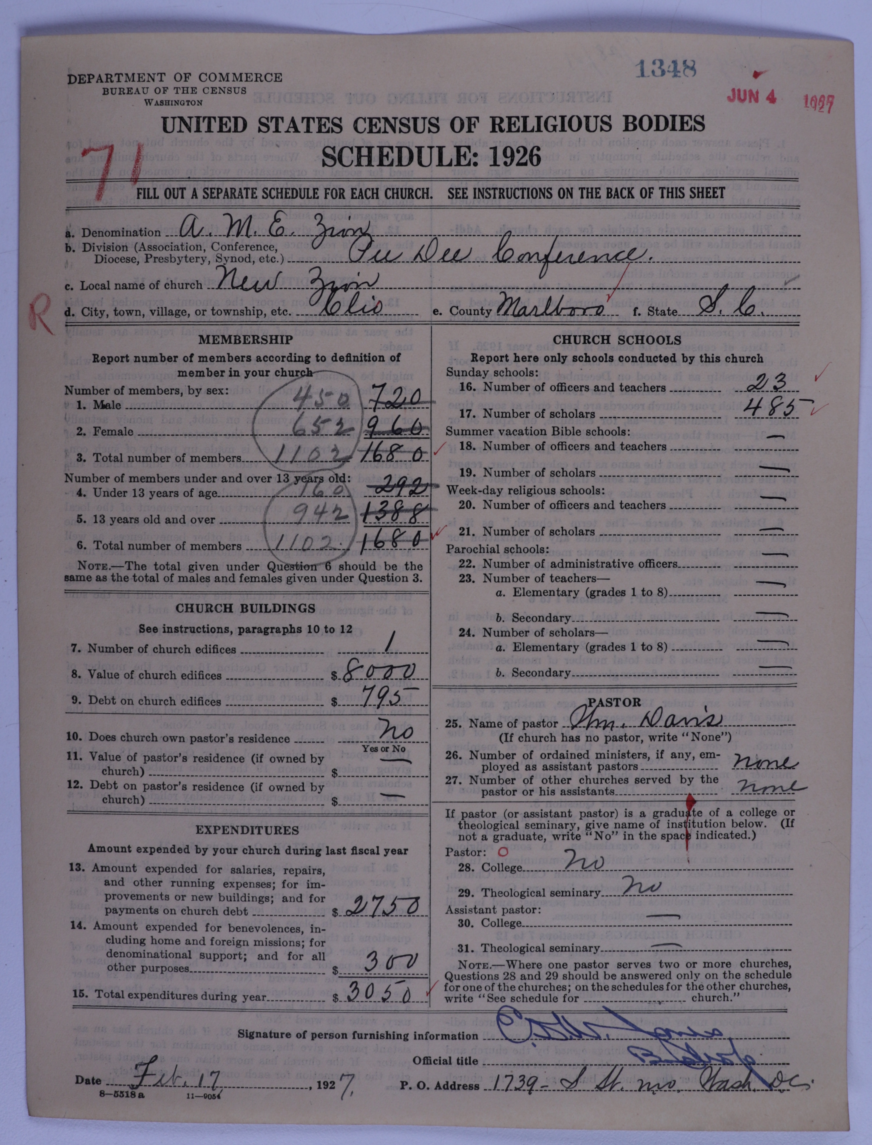 African Methodist Episcopal Zion Church: 1348