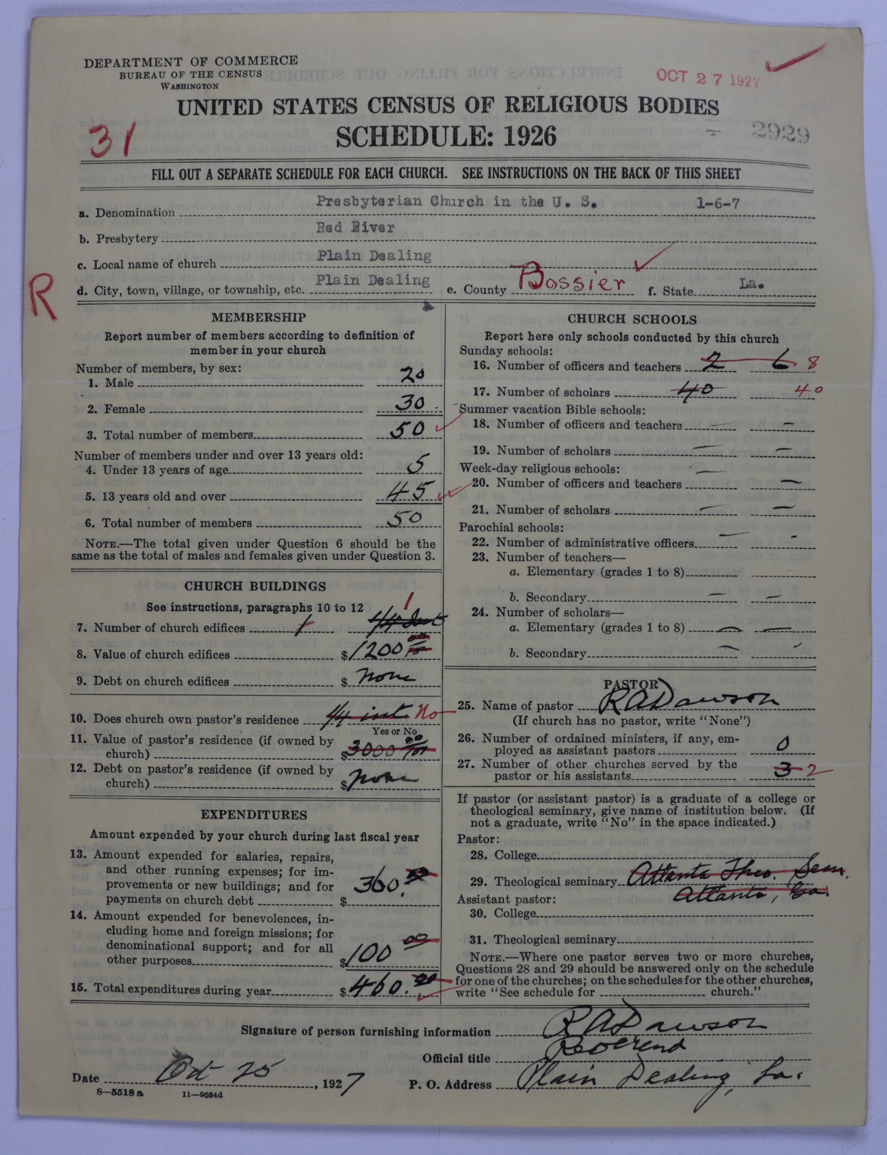 - Presbyterian Church in the United States: 2929