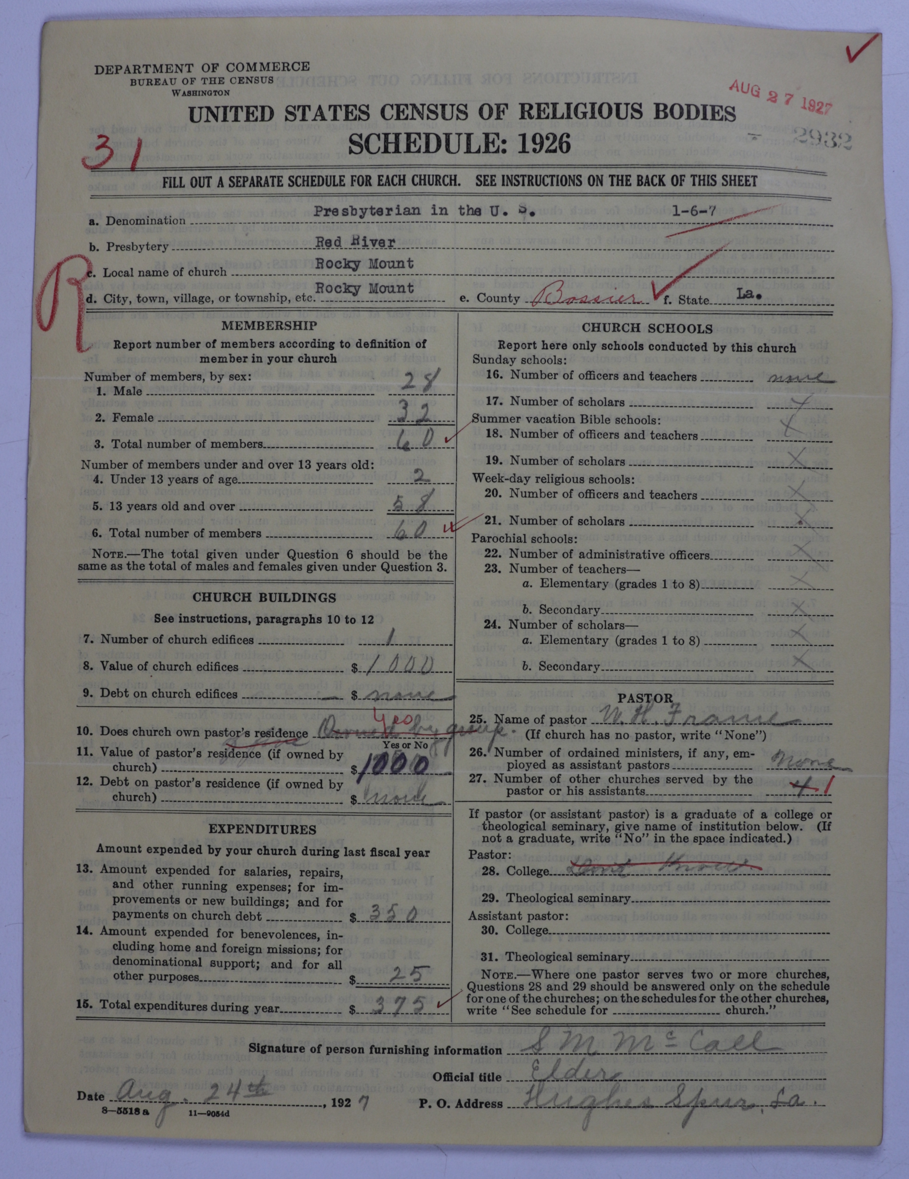 - Presbyterian Church in the United States: 2932