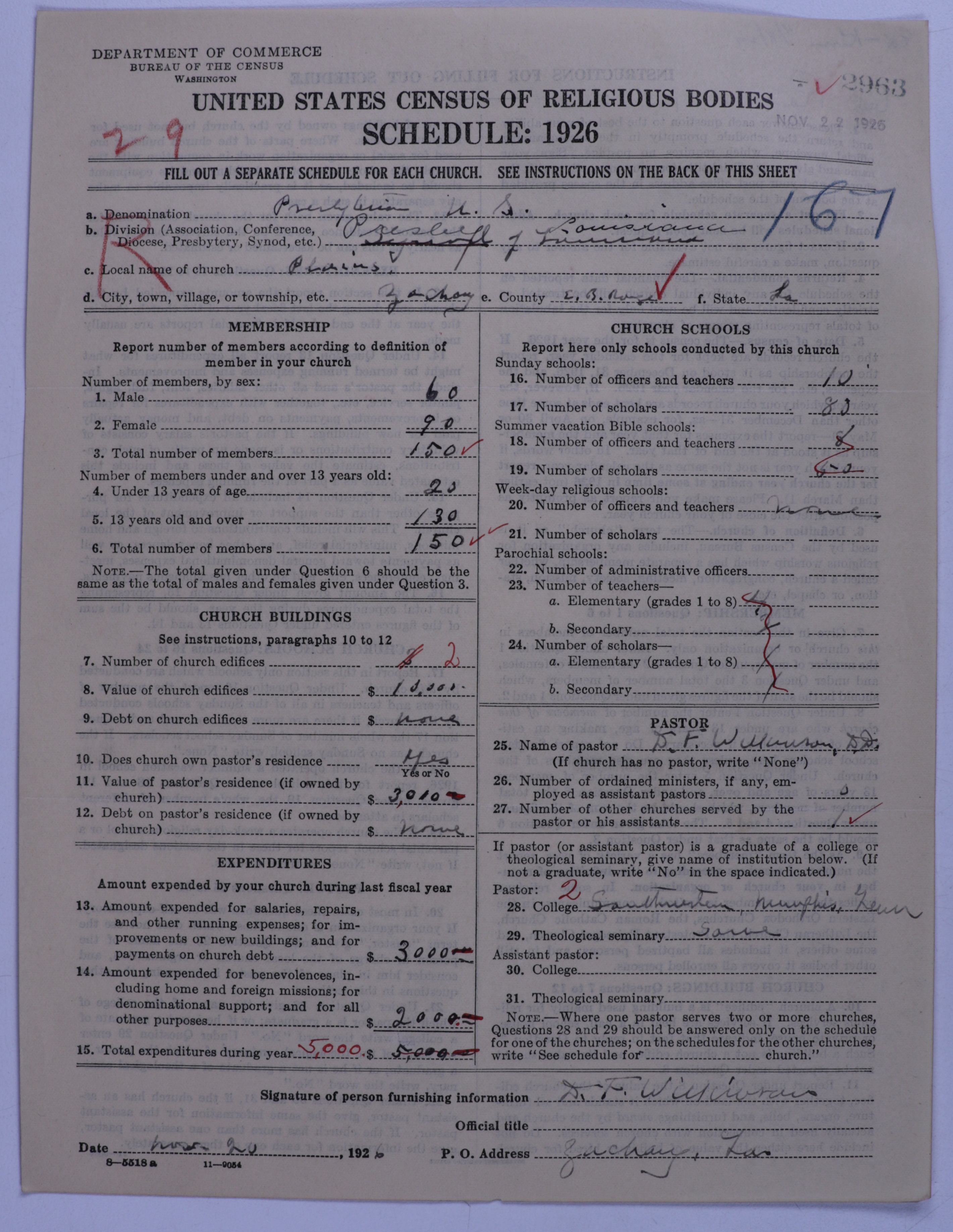 - Presbyterian Church in the United States: 2963
