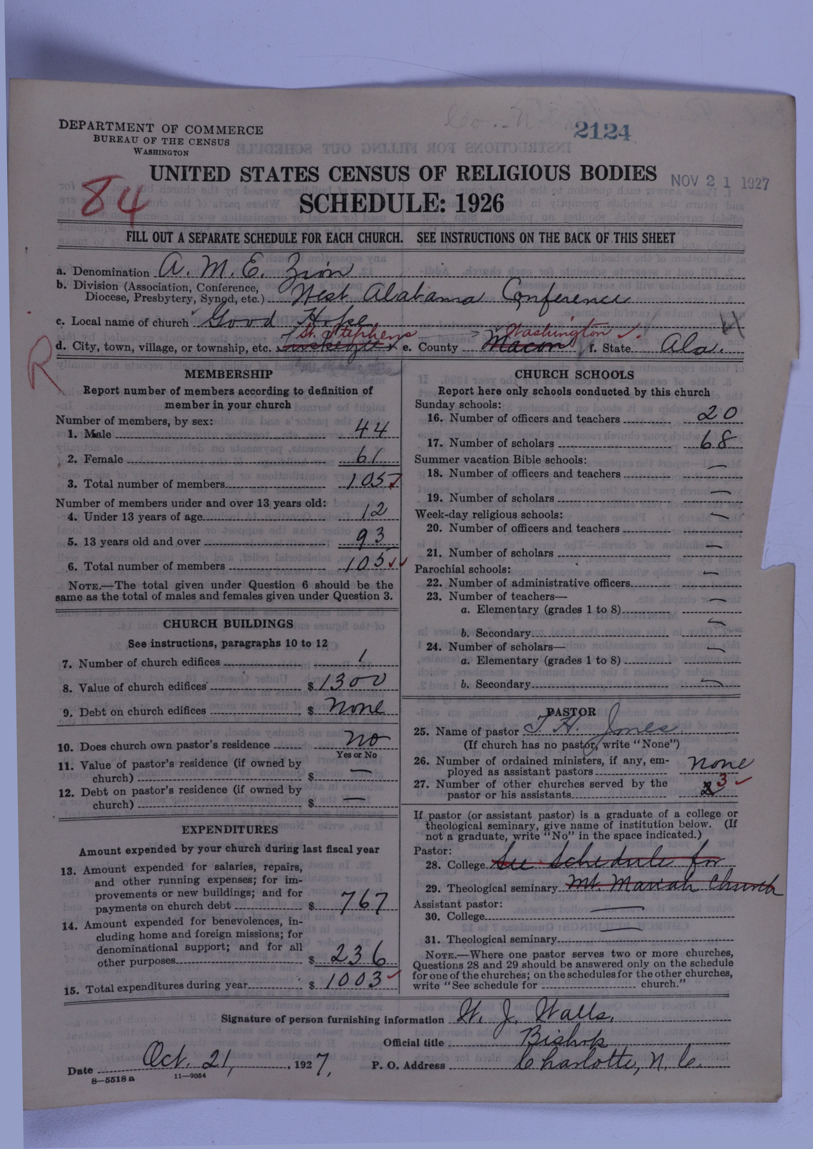 African Methodist Episcopal Zion Church: 2124