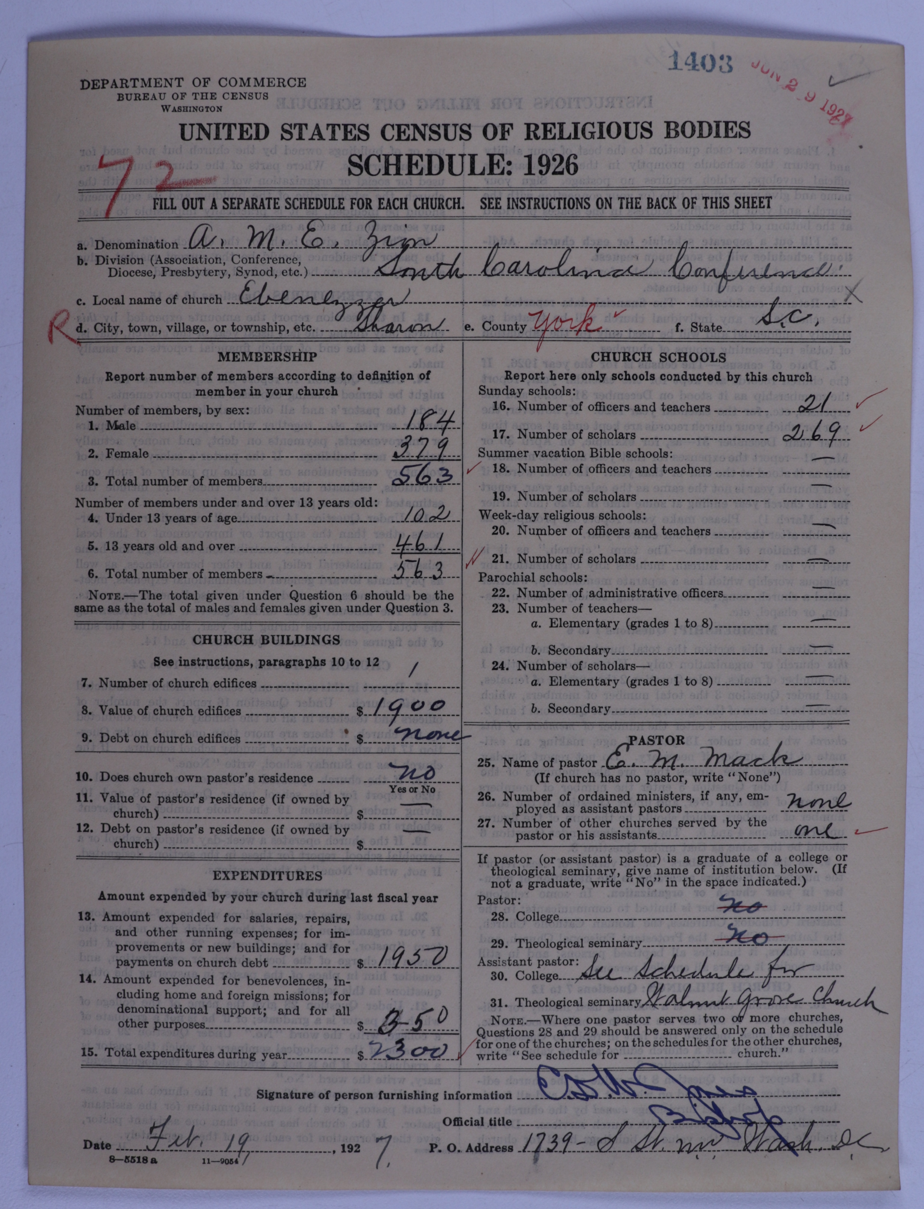 African Methodist Episcopal Zion Church: 1403