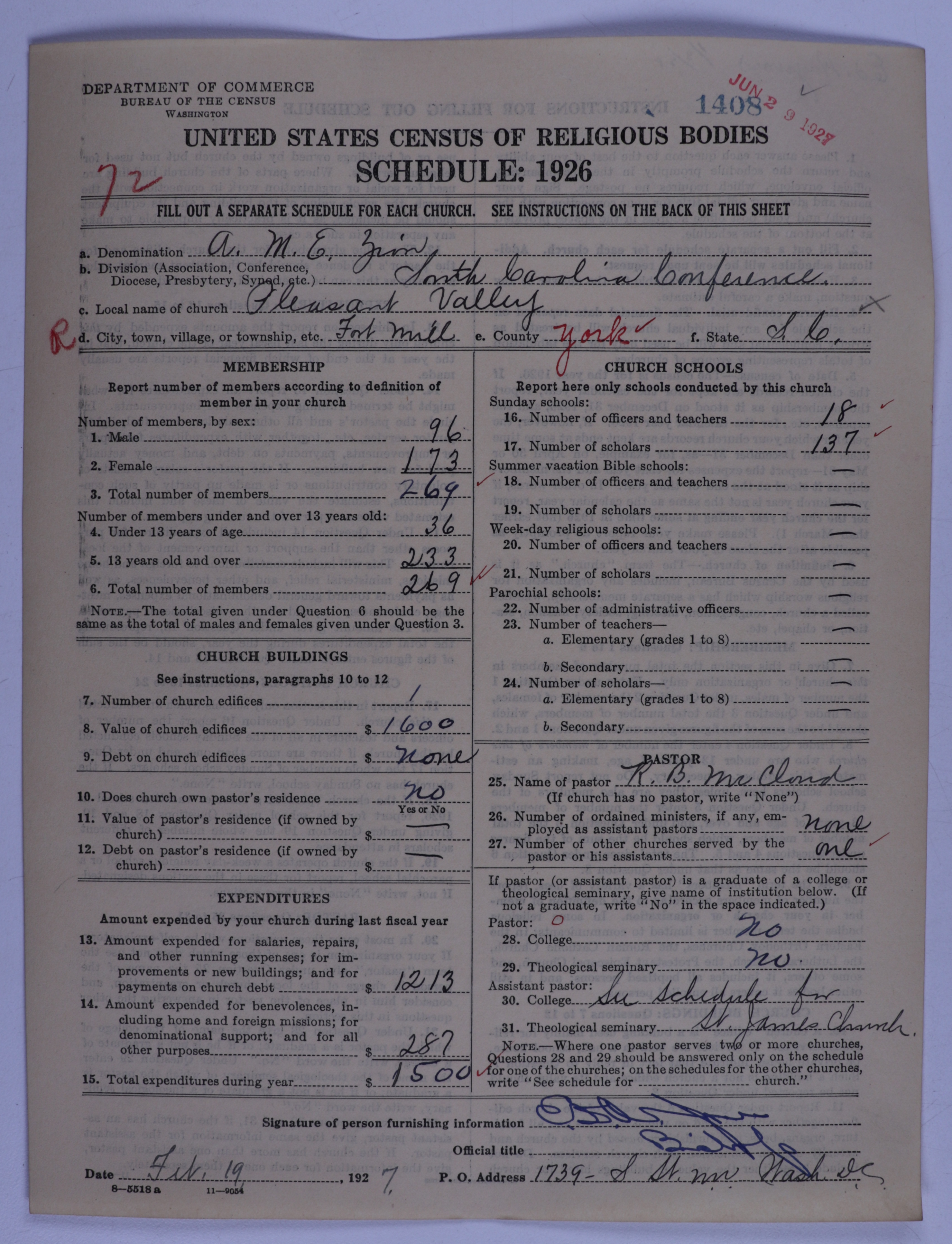 African Methodist Episcopal Zion Church: 1408