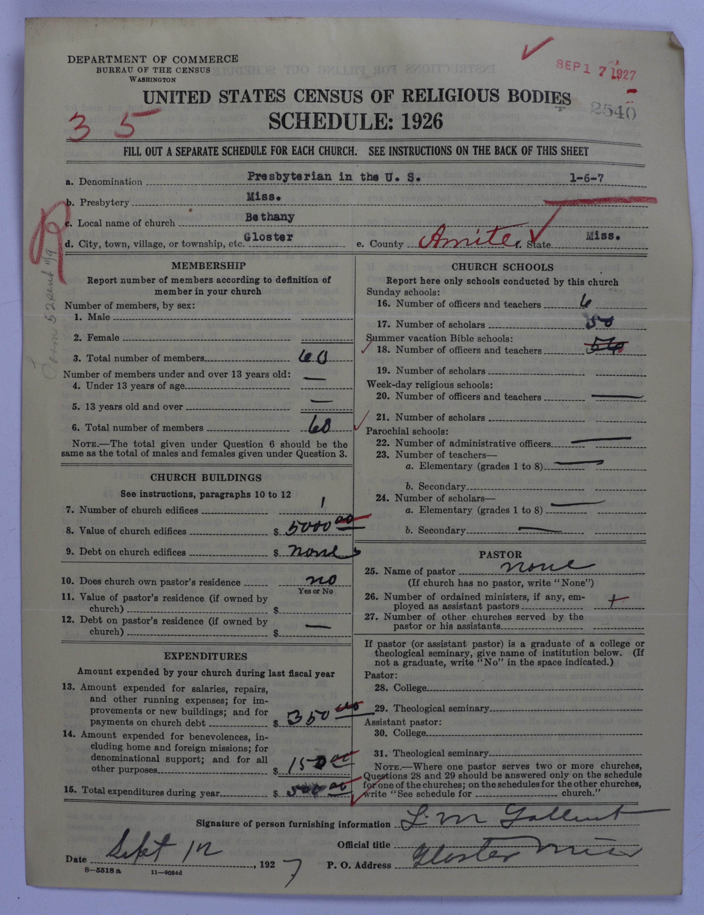 - Presbyterian Church in the United States: 2540