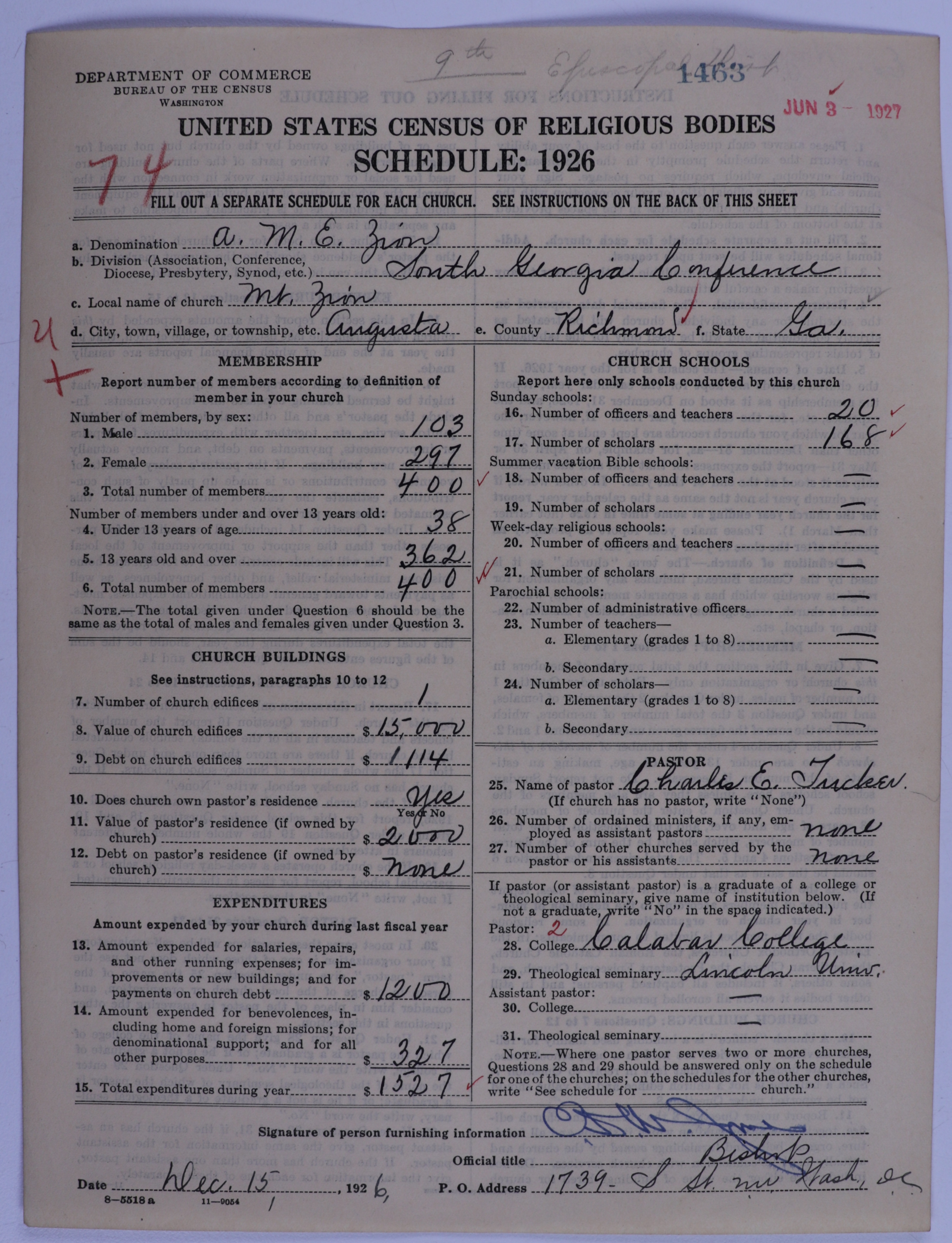 African Methodist Episcopal Zion Church: 1463