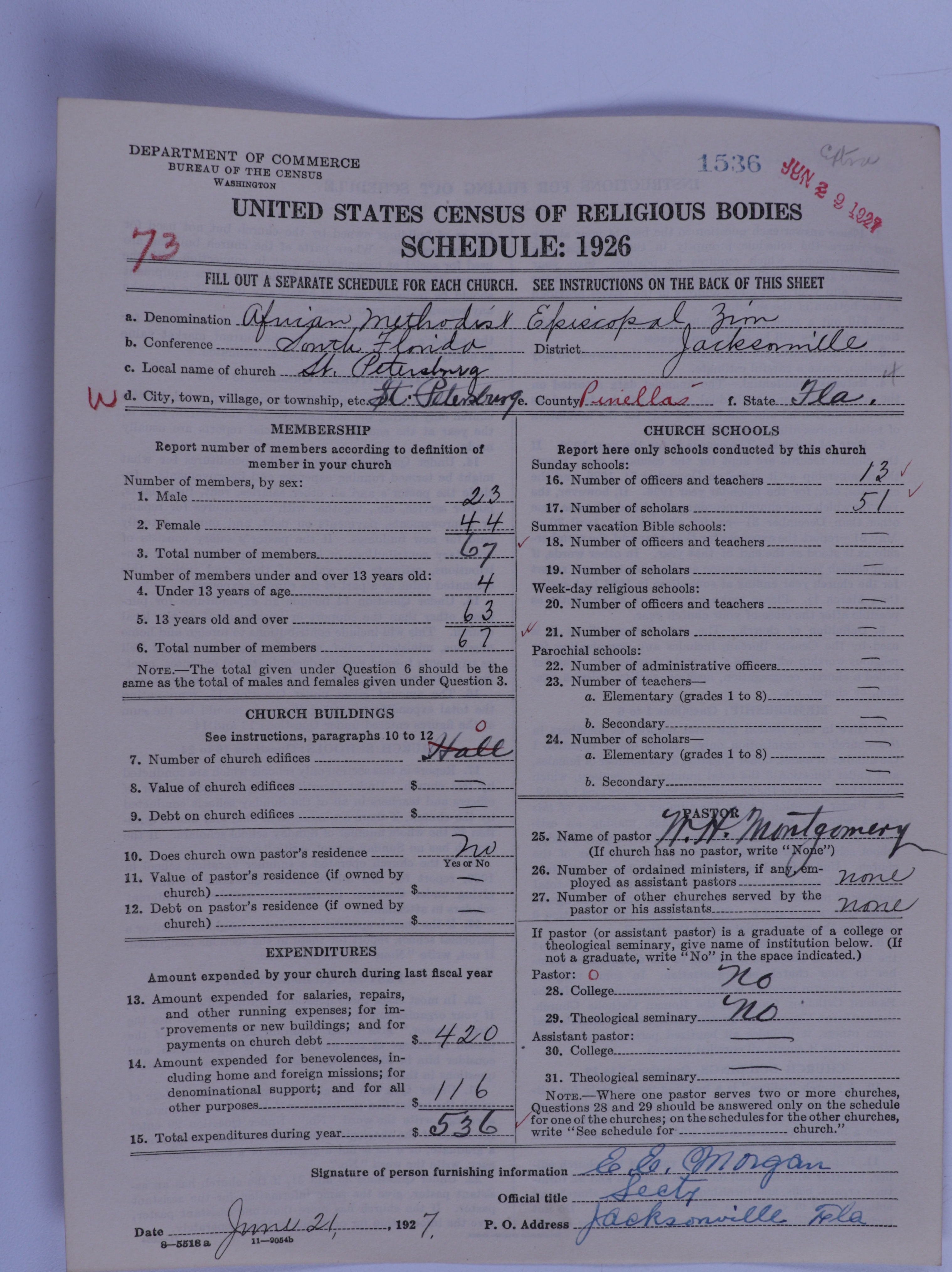 African Methodist Episcopal Zion Church: 1536