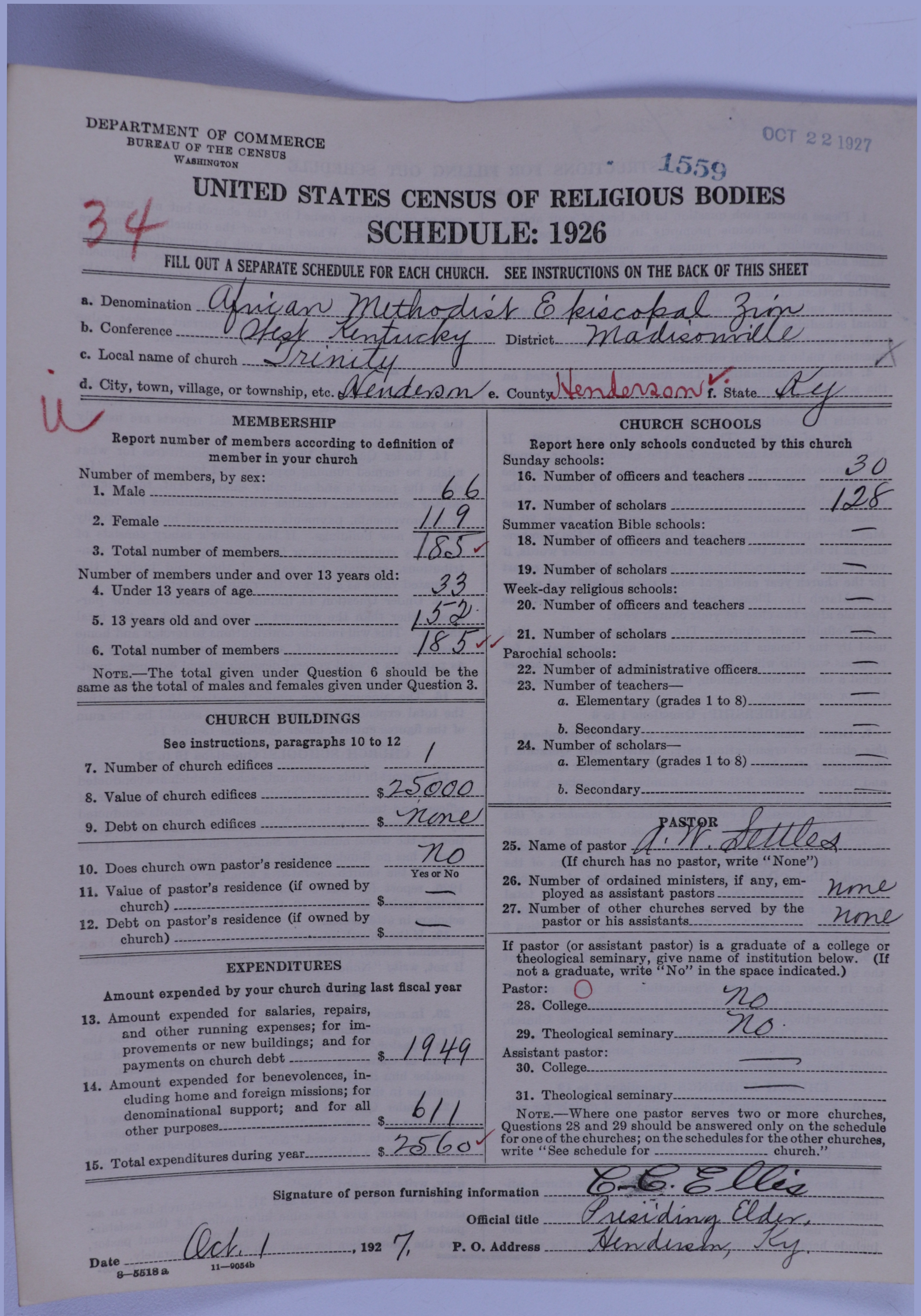 - African Methodist Episcopal Zion Church: 1559