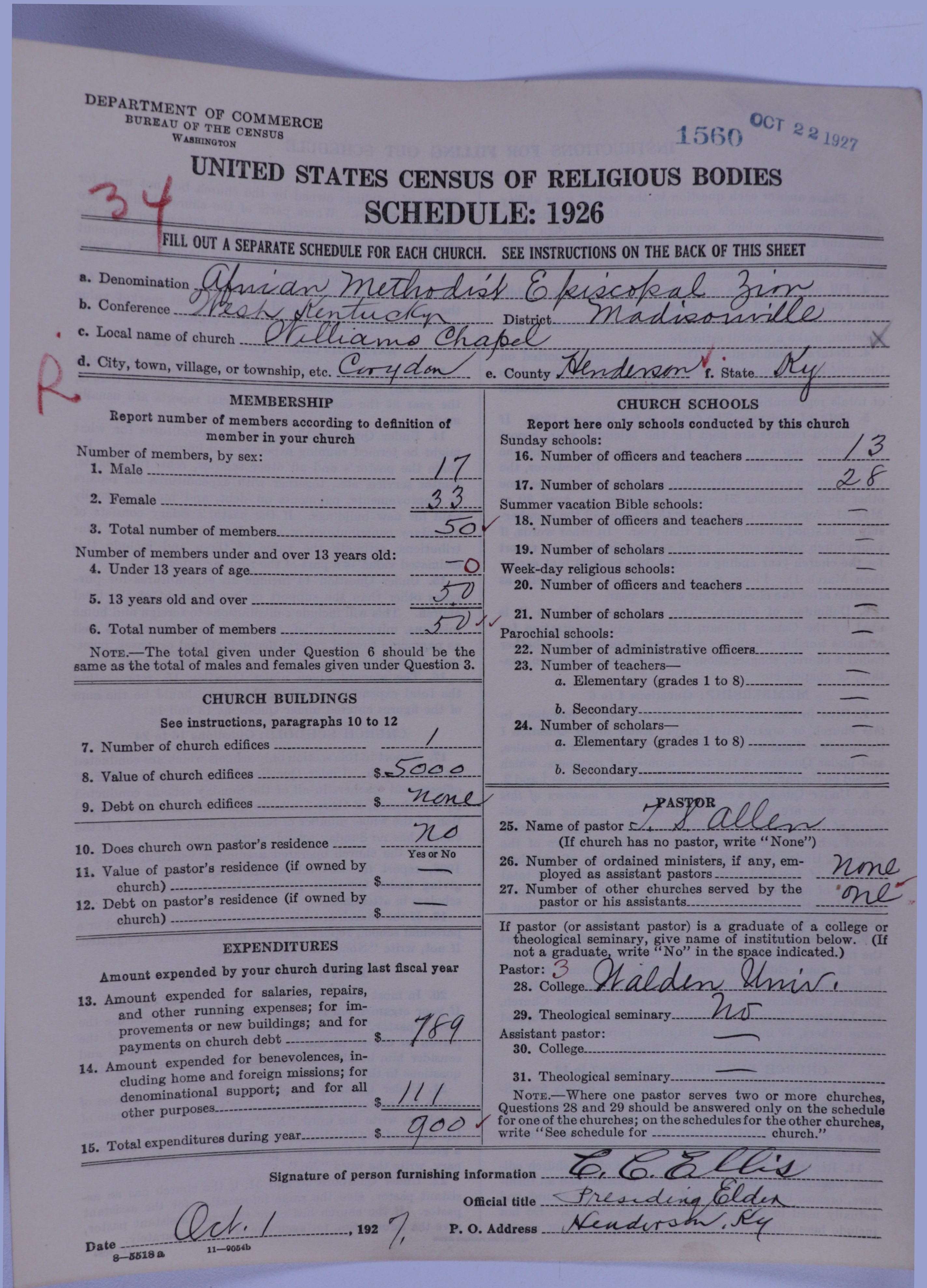 - African Methodist Episcopal Zion Church: 1560