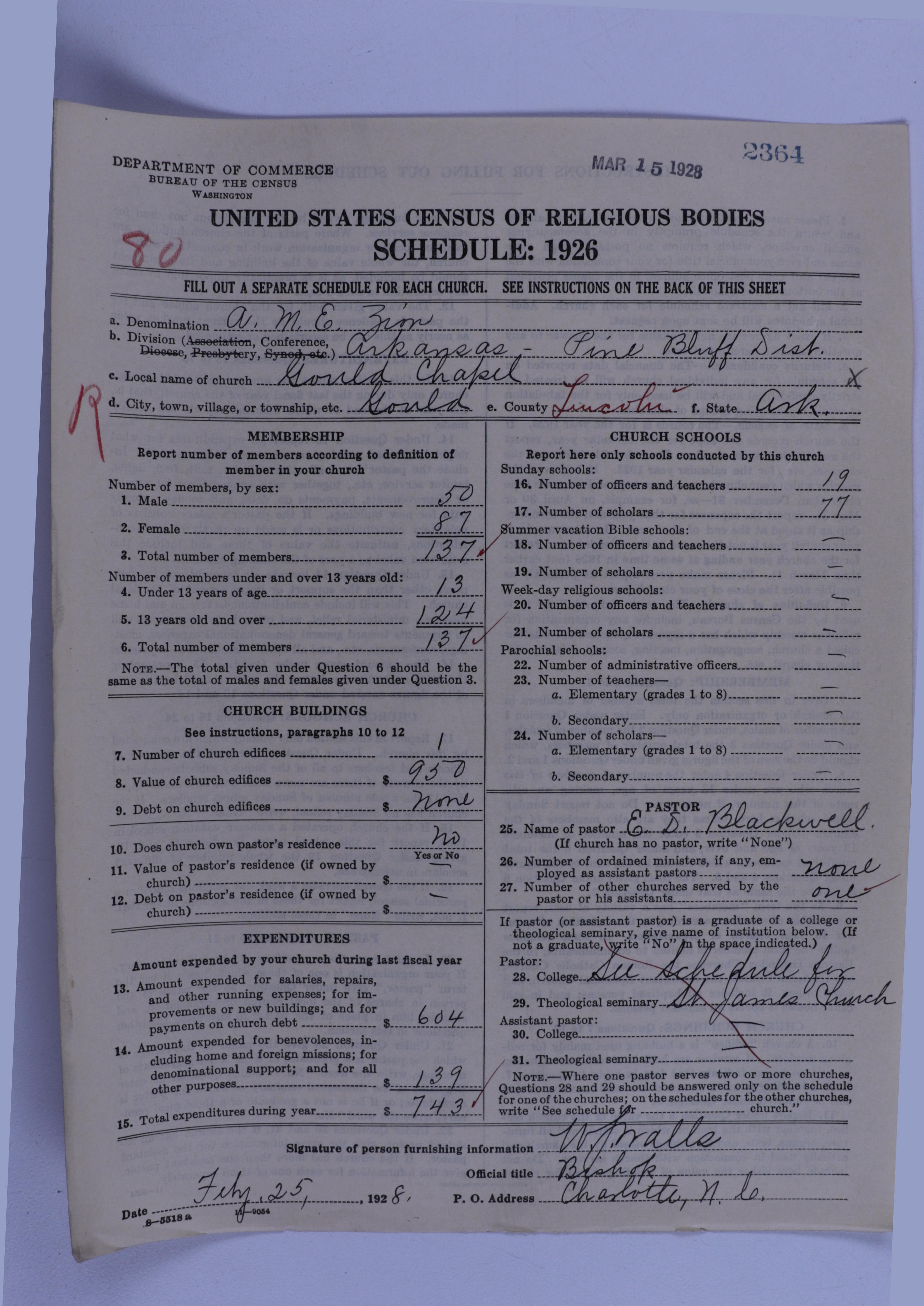 African Methodist Episcopal Zion Church: 2364