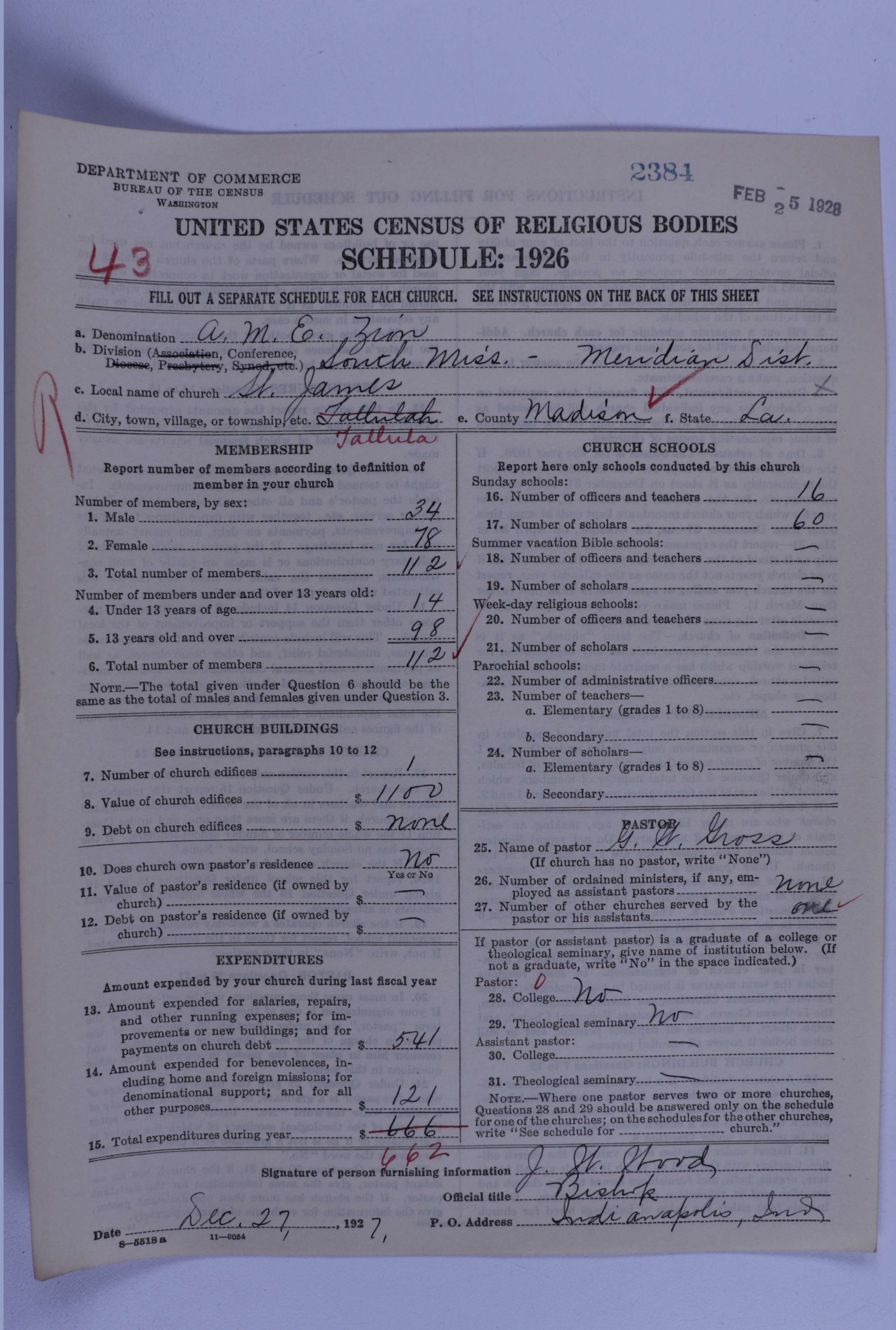African Methodist Episcopal Zion Church: 2384