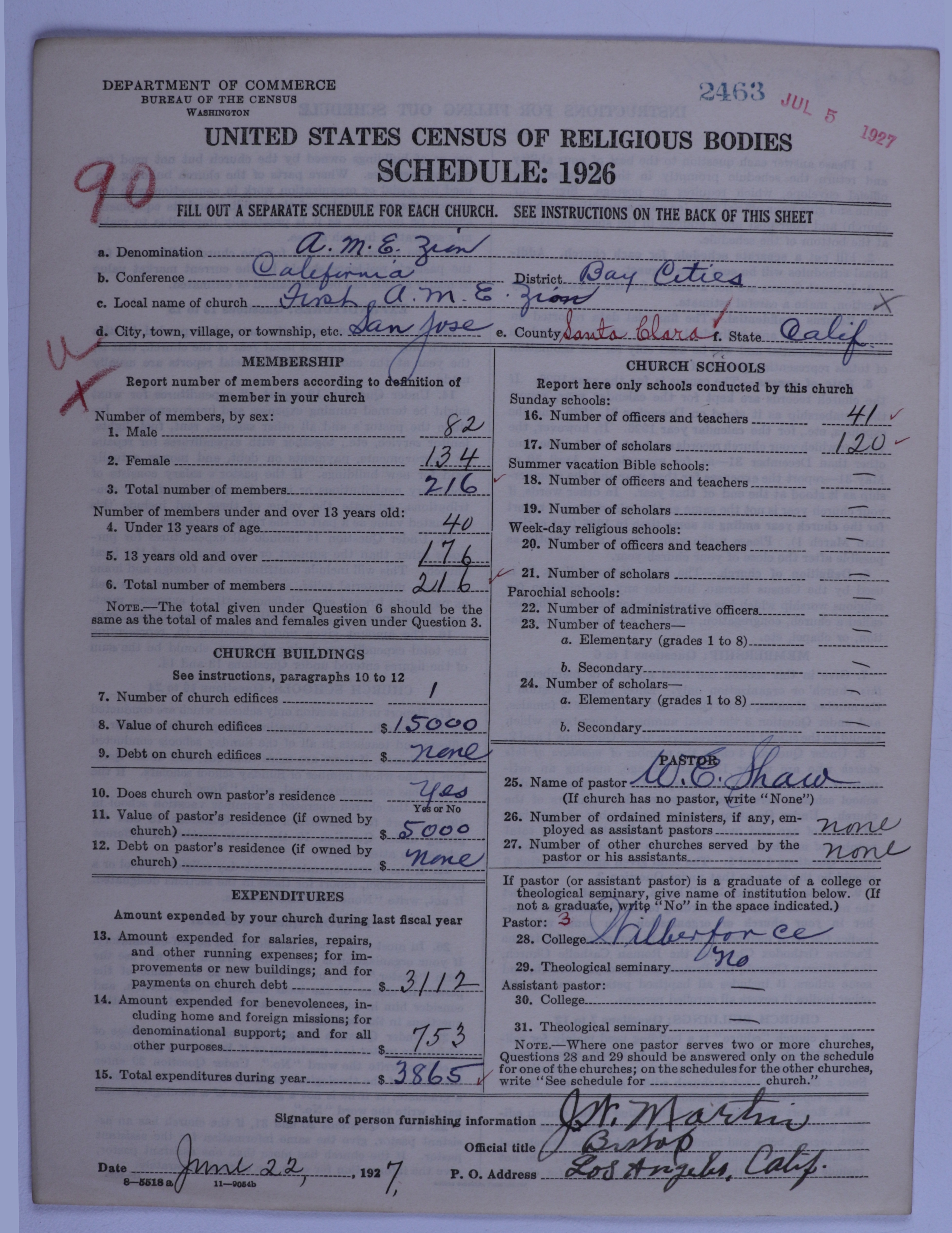 African Methodist Episcopal Zion Church: 2463