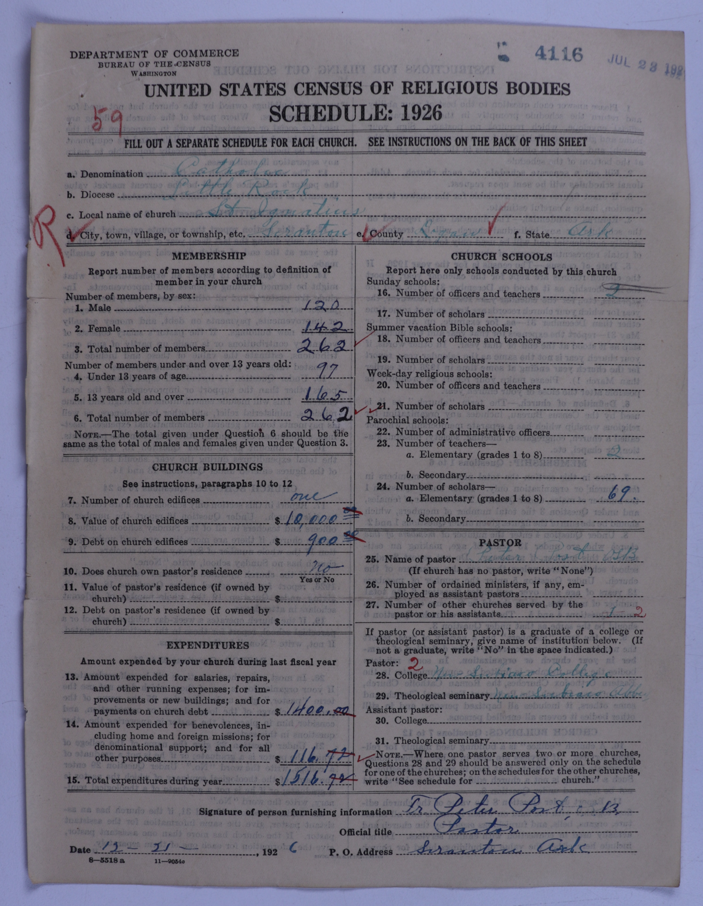 - Roman Catholic Church: 4116