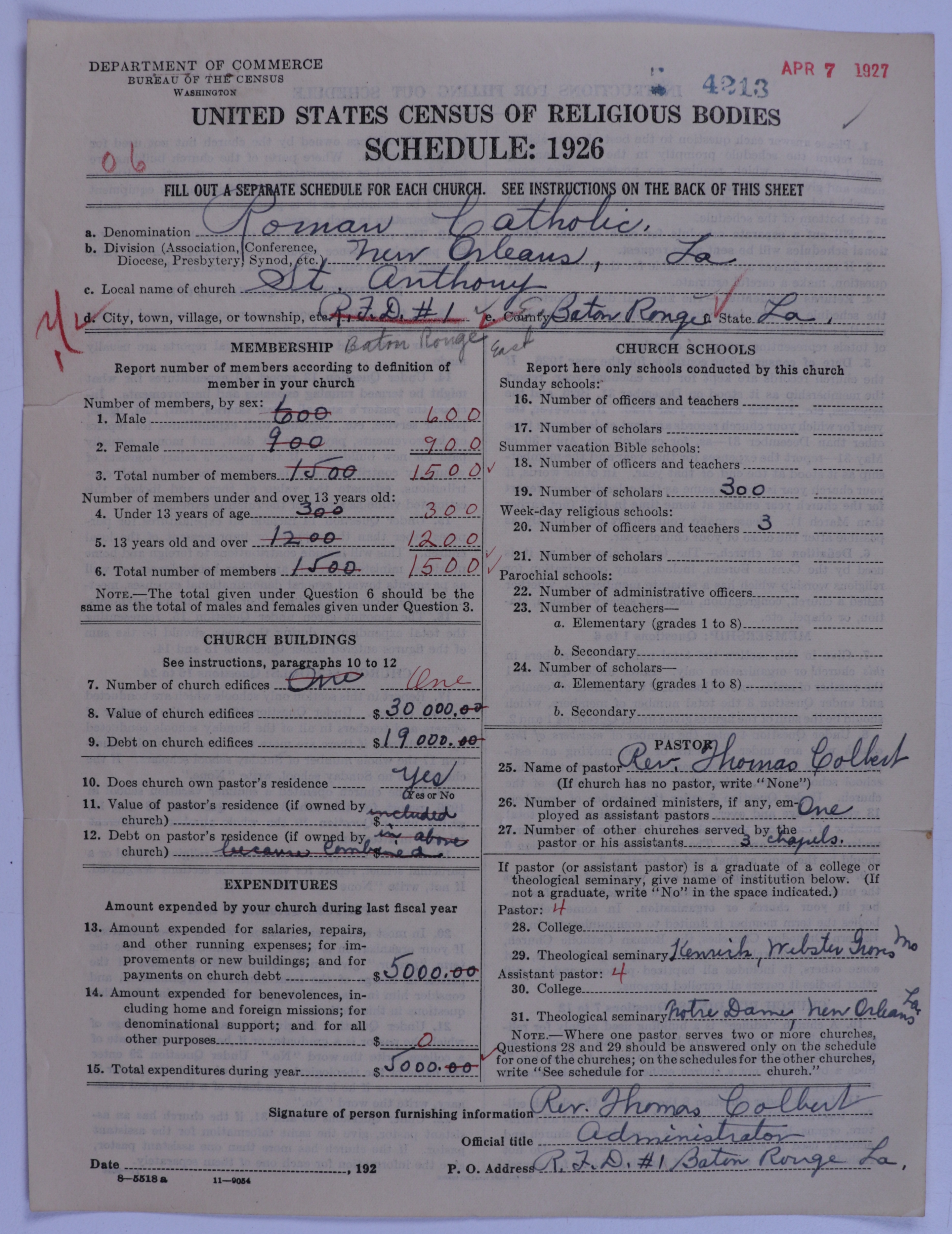 - Roman Catholic Church: 4213
